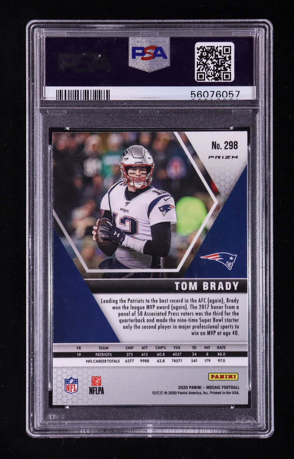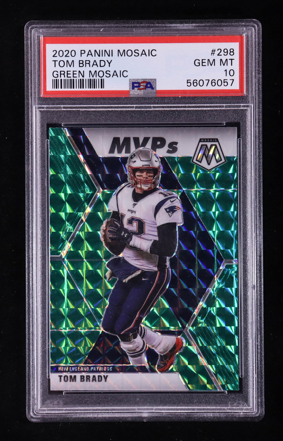 Tom Brady 2020 Panini Mosaic Mosaic Green #298 MVP (PSA 10)