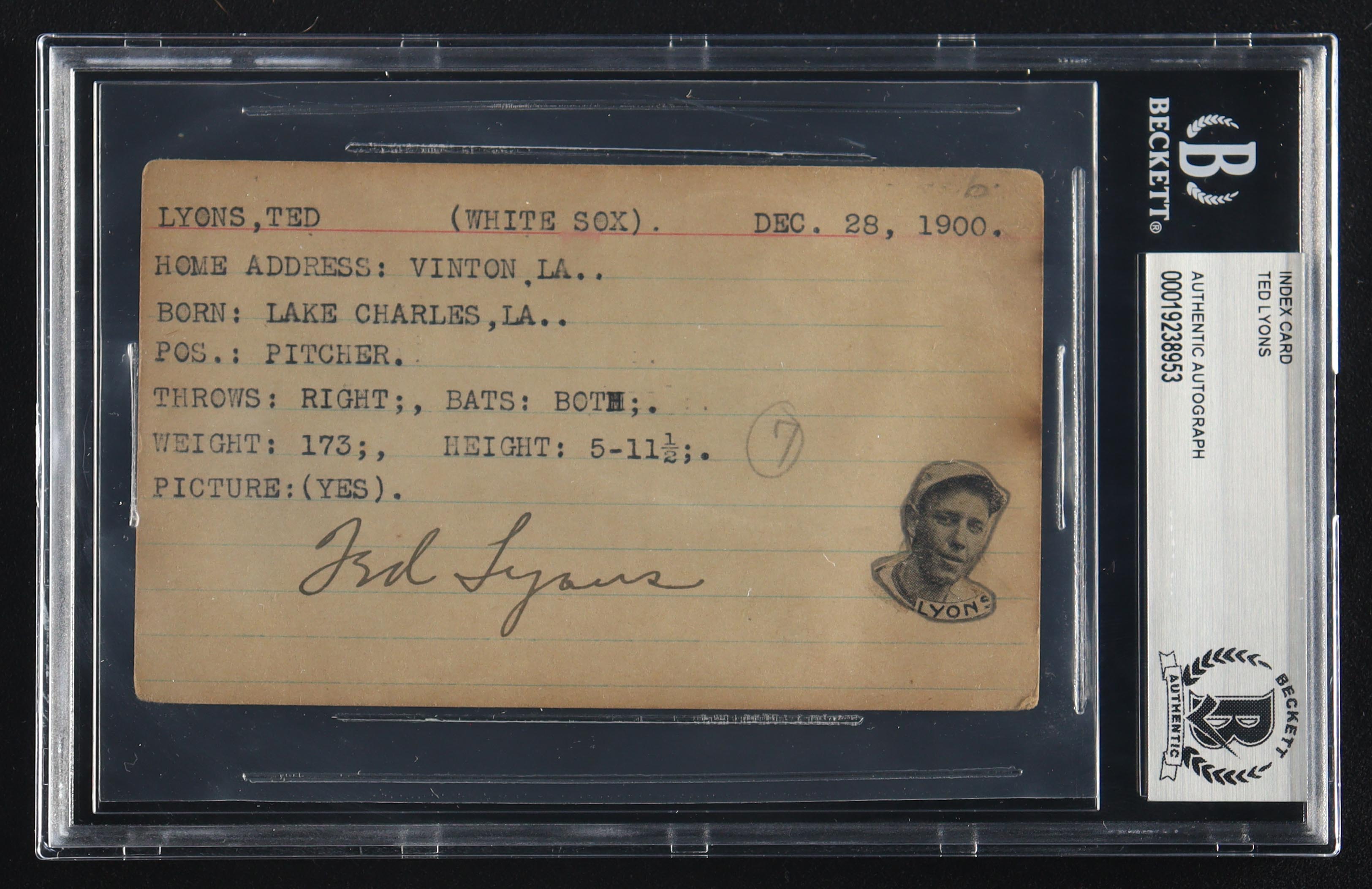 Ted Lyons Signed Vintage 3x5 Index Card (BGS)