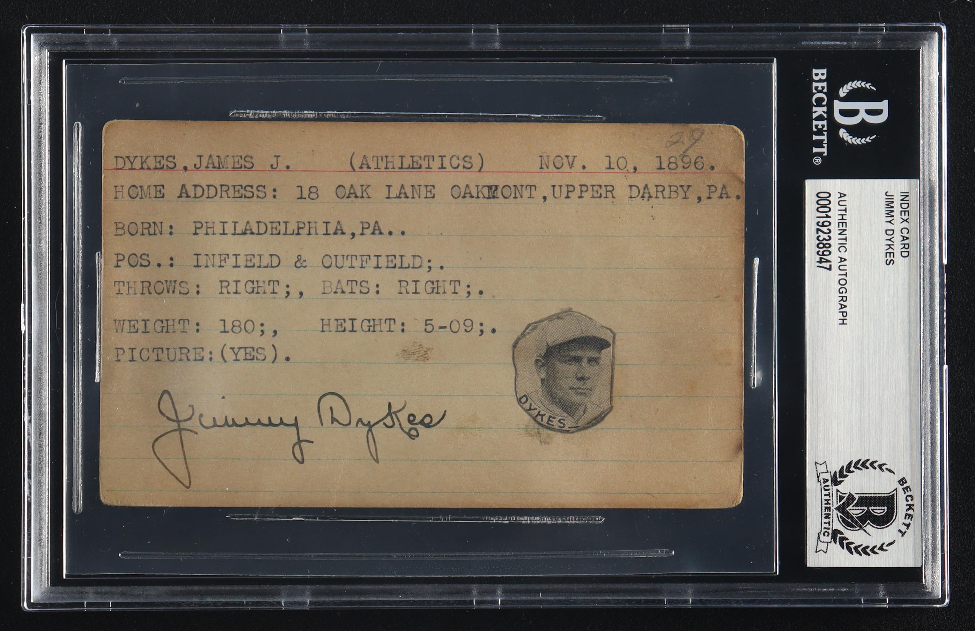 Jimmy Dykes Signed Vintage 3x5 Index Card (BGS)