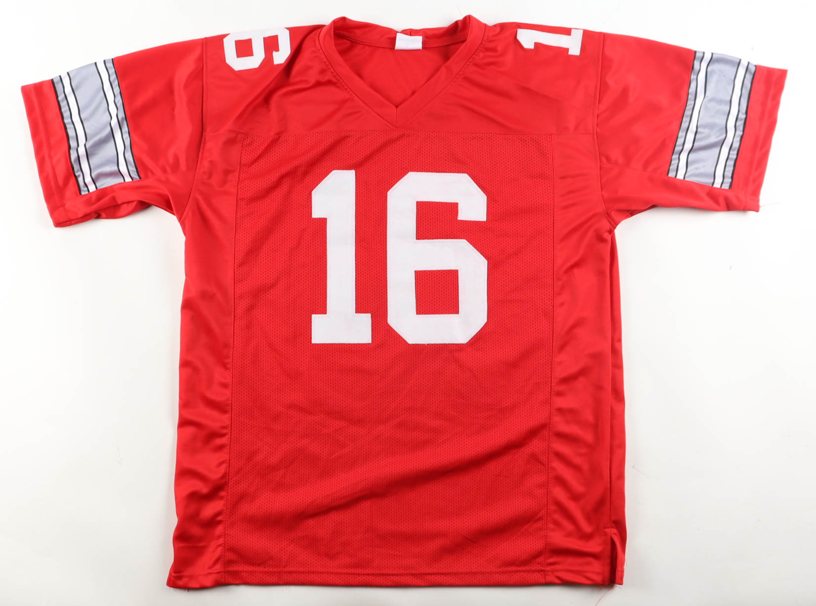 Custom jersey. Everything sewn on, size XL. Hand-signed and inscribed by Craig Krenzel. Please note, glue is visible through the jersey numbers. See photos regarding the condition of the item.