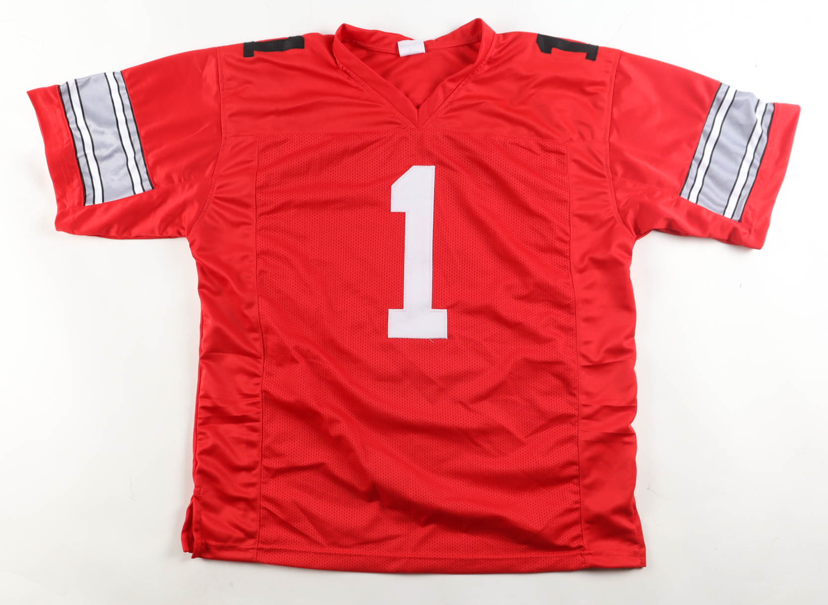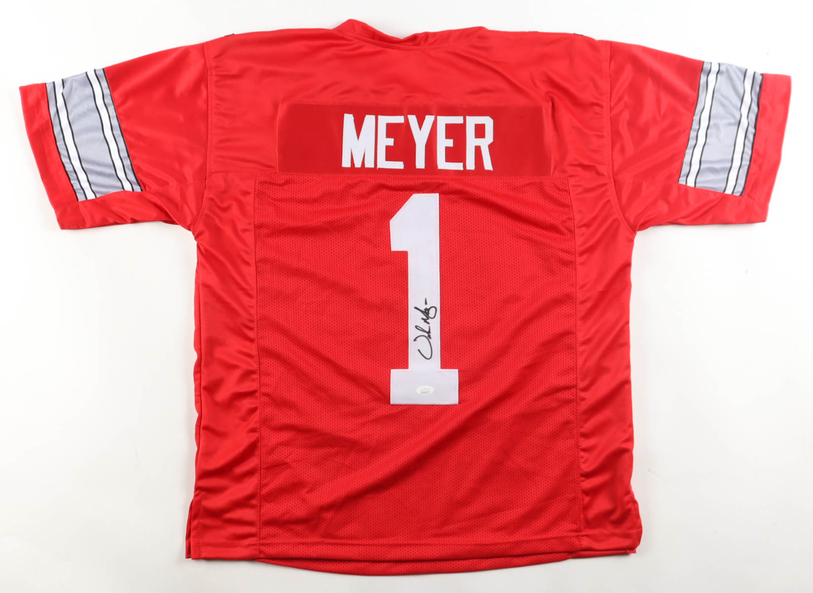 Custom jersey. Everything is sewn on, size XL. Hand-signed by Urban Meyer. Please note, glue is visible through the reverse number.