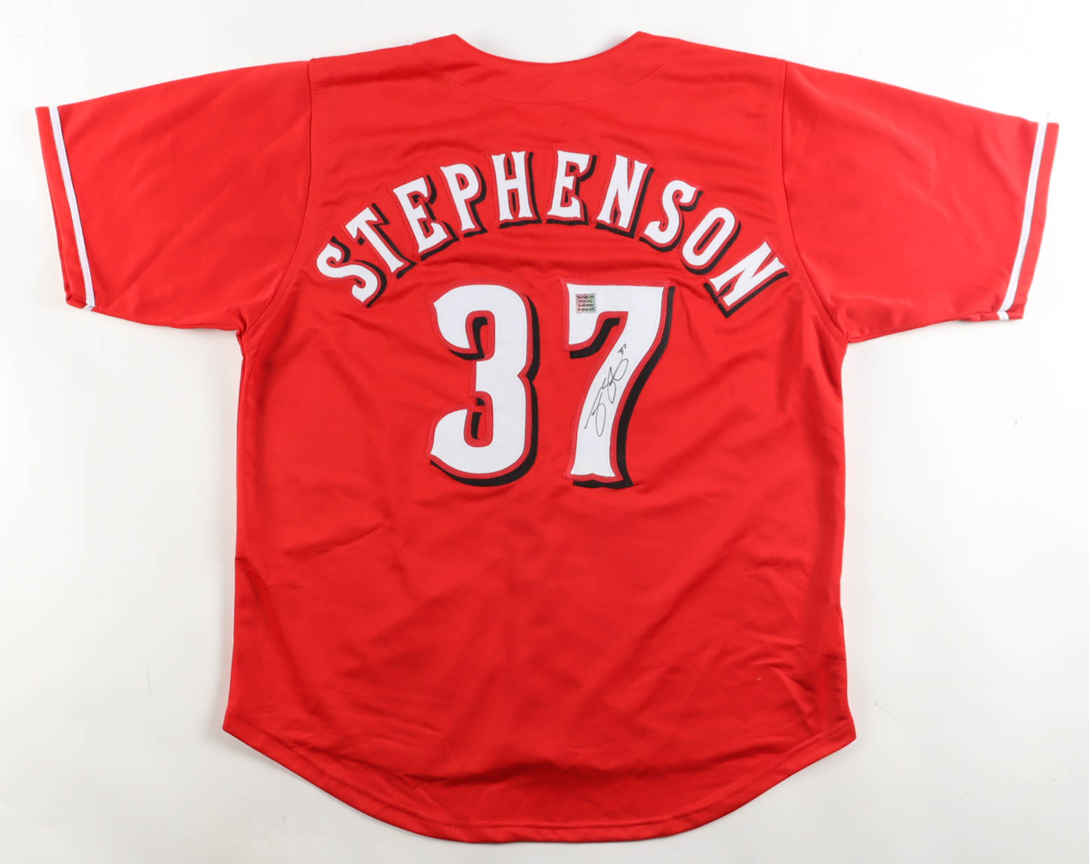 Custom jersey. Everything sewn on, size XL. Hand-signed by Tyler Stephenson.