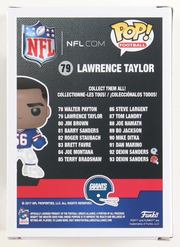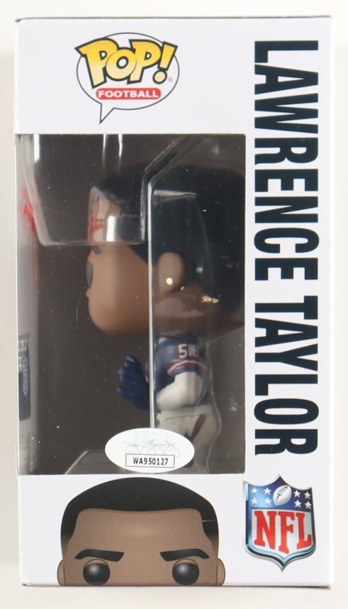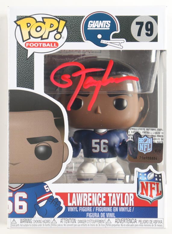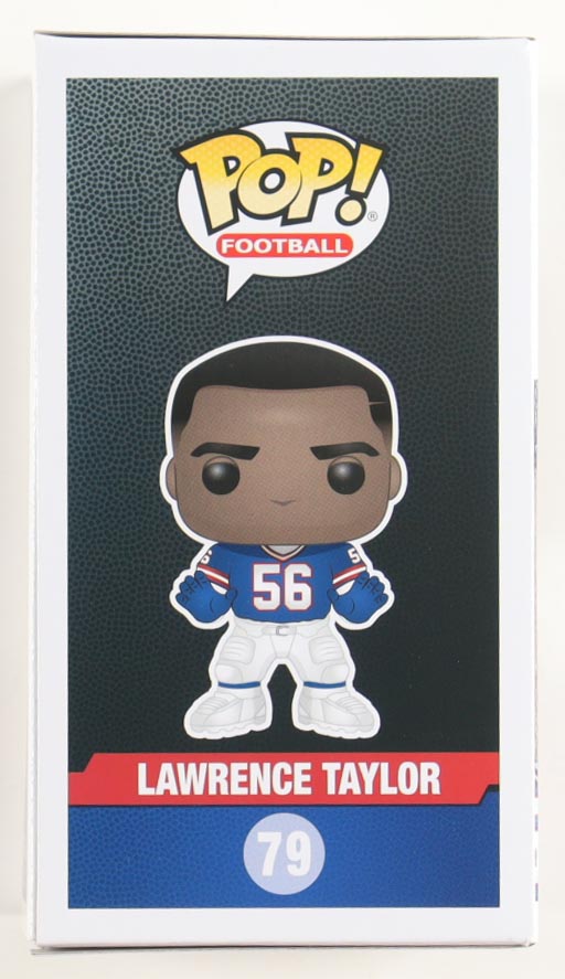 Funko Pop! vinyl figure measures approximately 4" tall and has been hand-signed on the packaging by Lawrence Taylor (New York Giants, HOF).