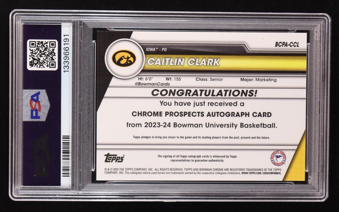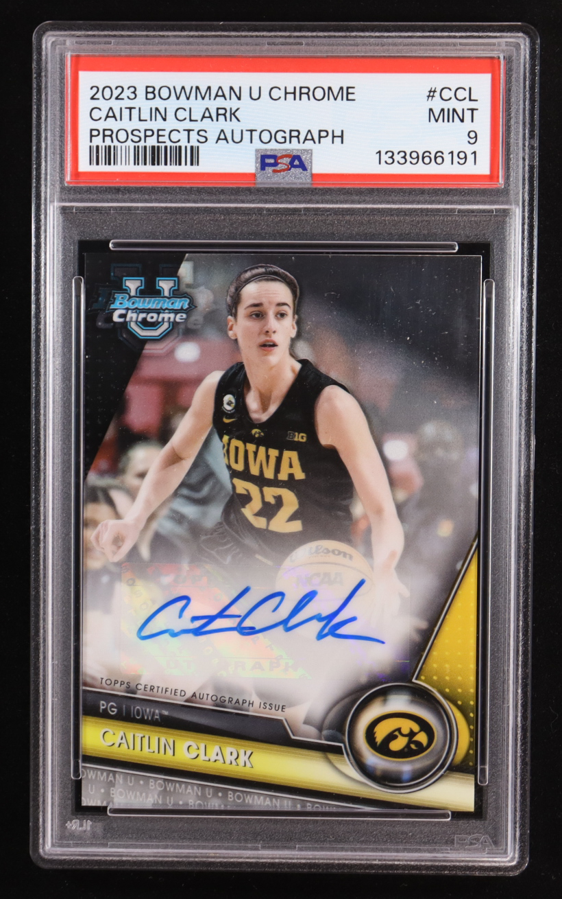 Caitlin Clark 2023-24 Bowman Chrome University Prospect Autographs #BCPACCL RC (PSA 9)