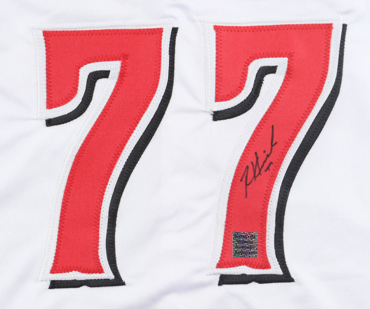 Custom jersey with everything sewn on, size XL. Hand-signed by Rece Hinds.