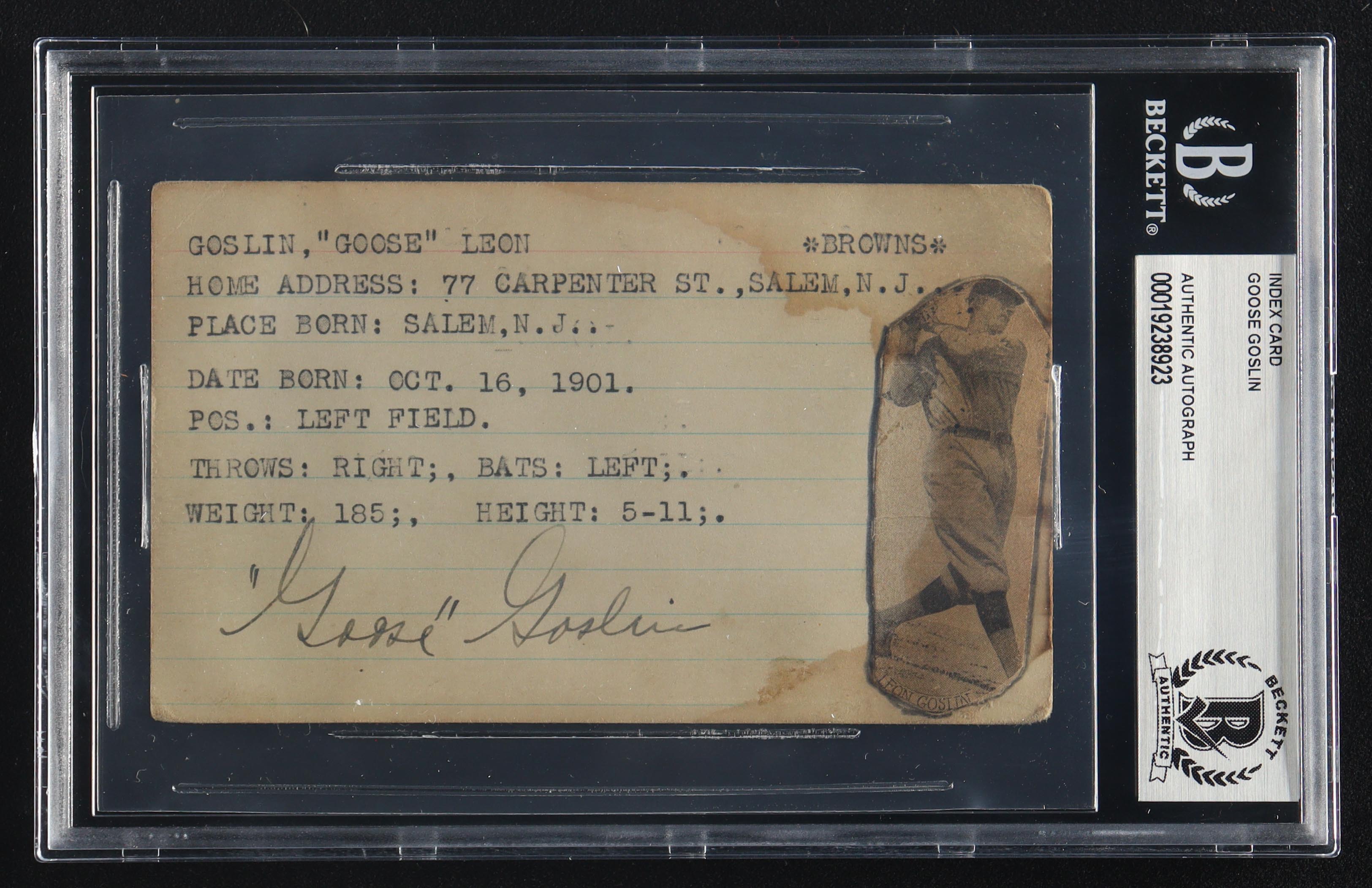 Goose Goslin Signed Vintage 3x5 Index Card (BGS)