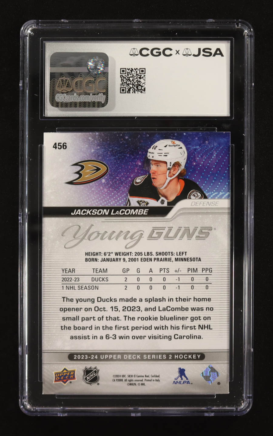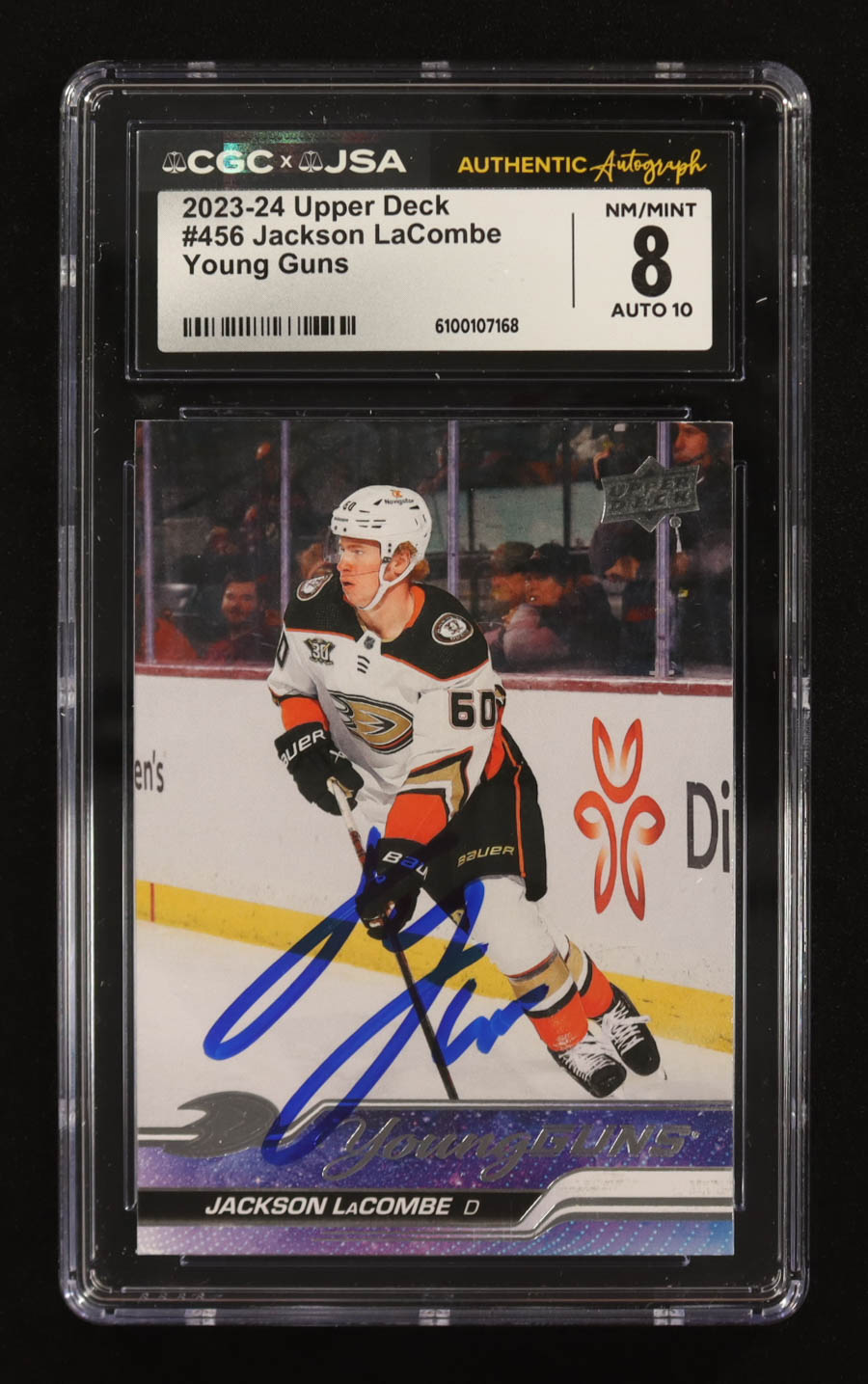 Jackson LaCombe Signed 2023-24 Upper Deck #456 RC (CGC 8)