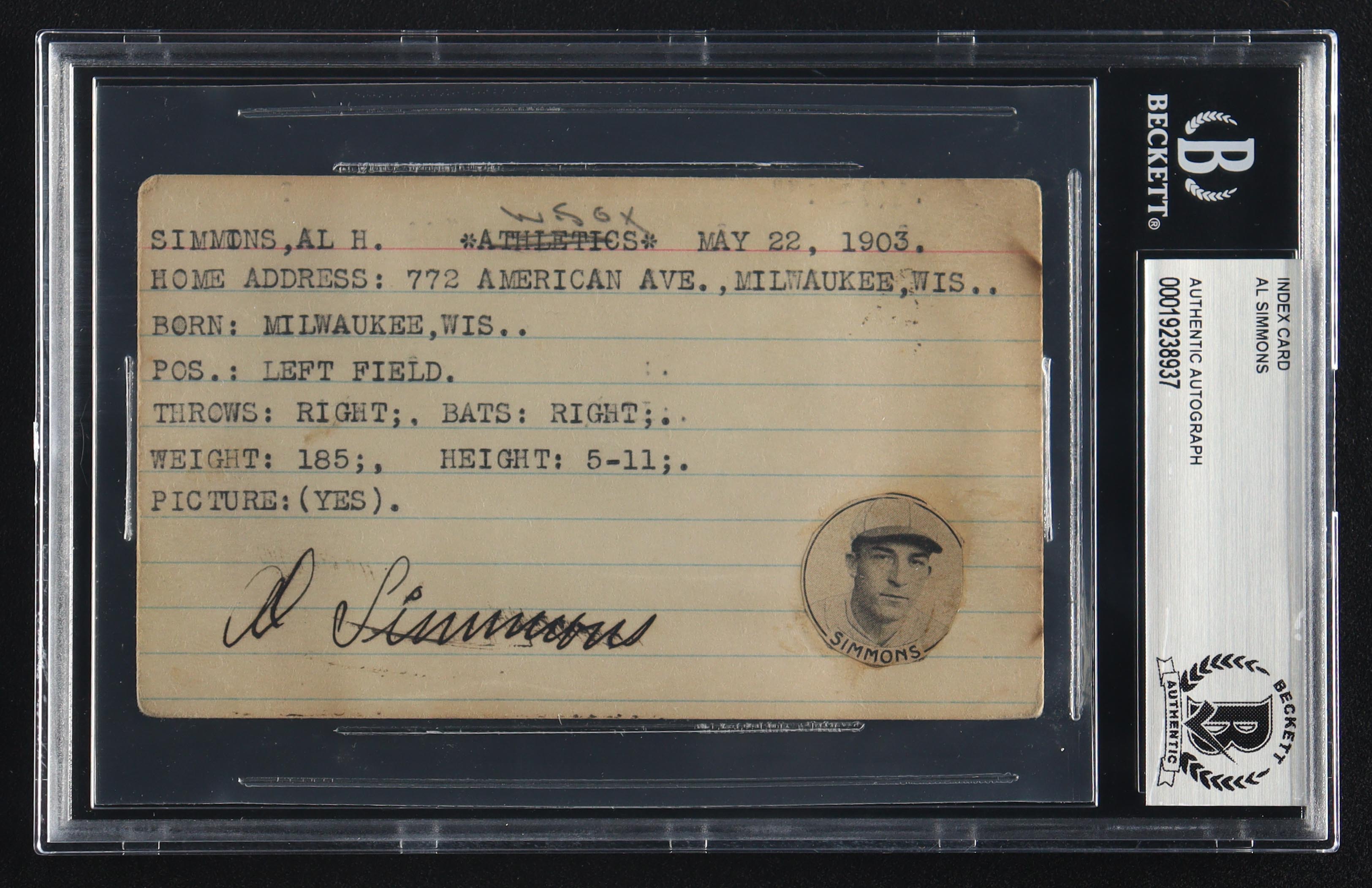 Al Simmons Signed Vintage 3x5 Index Card (BGS)