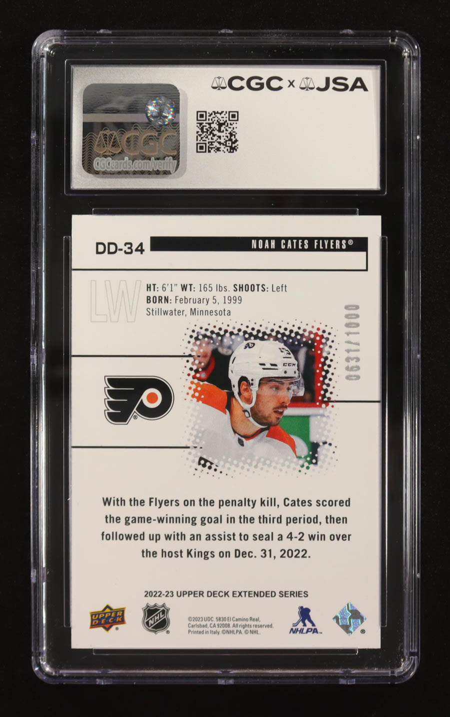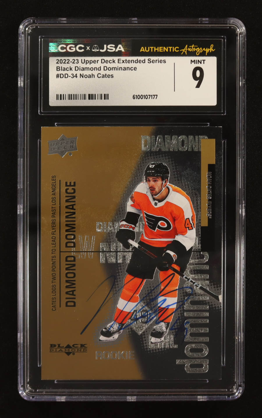 Noah Cates Signed 2022-23 Upper Deck Black Diamond Dominance #DD34 #0631/1000 RC (CGC Encapsulated)
