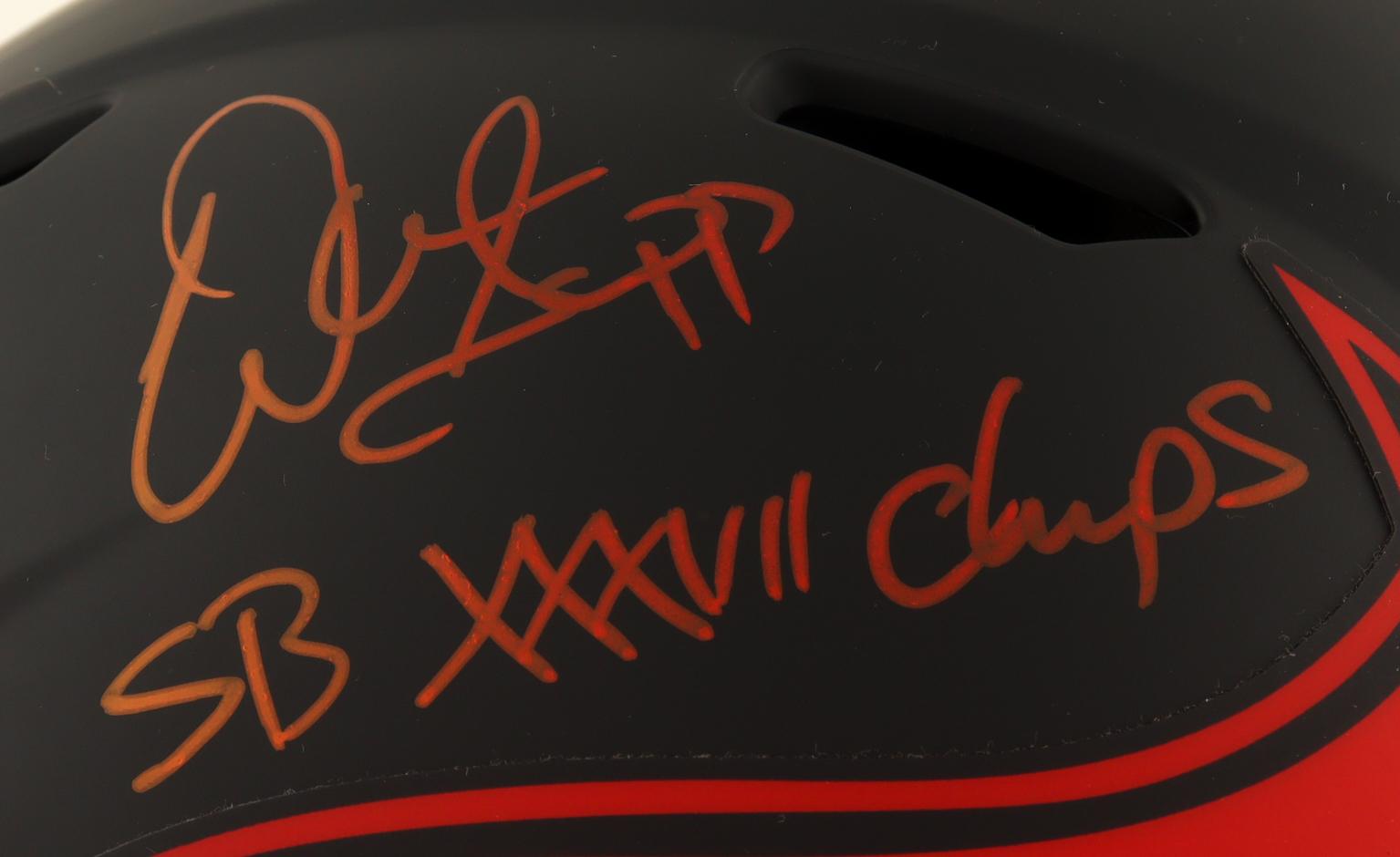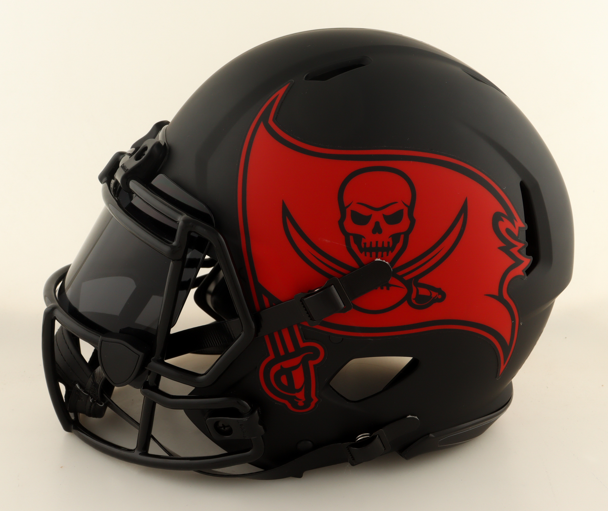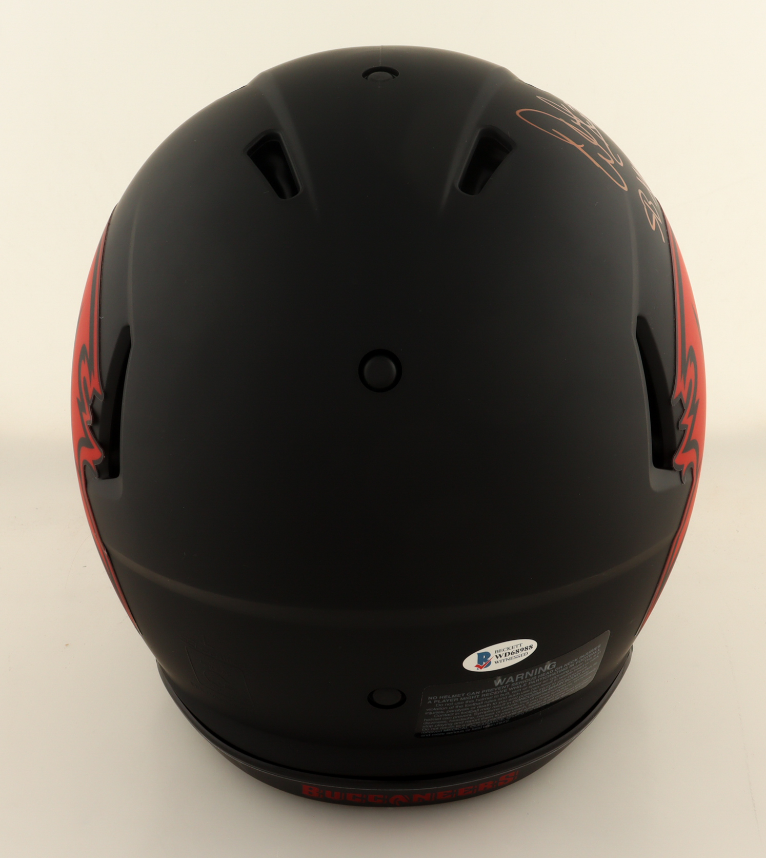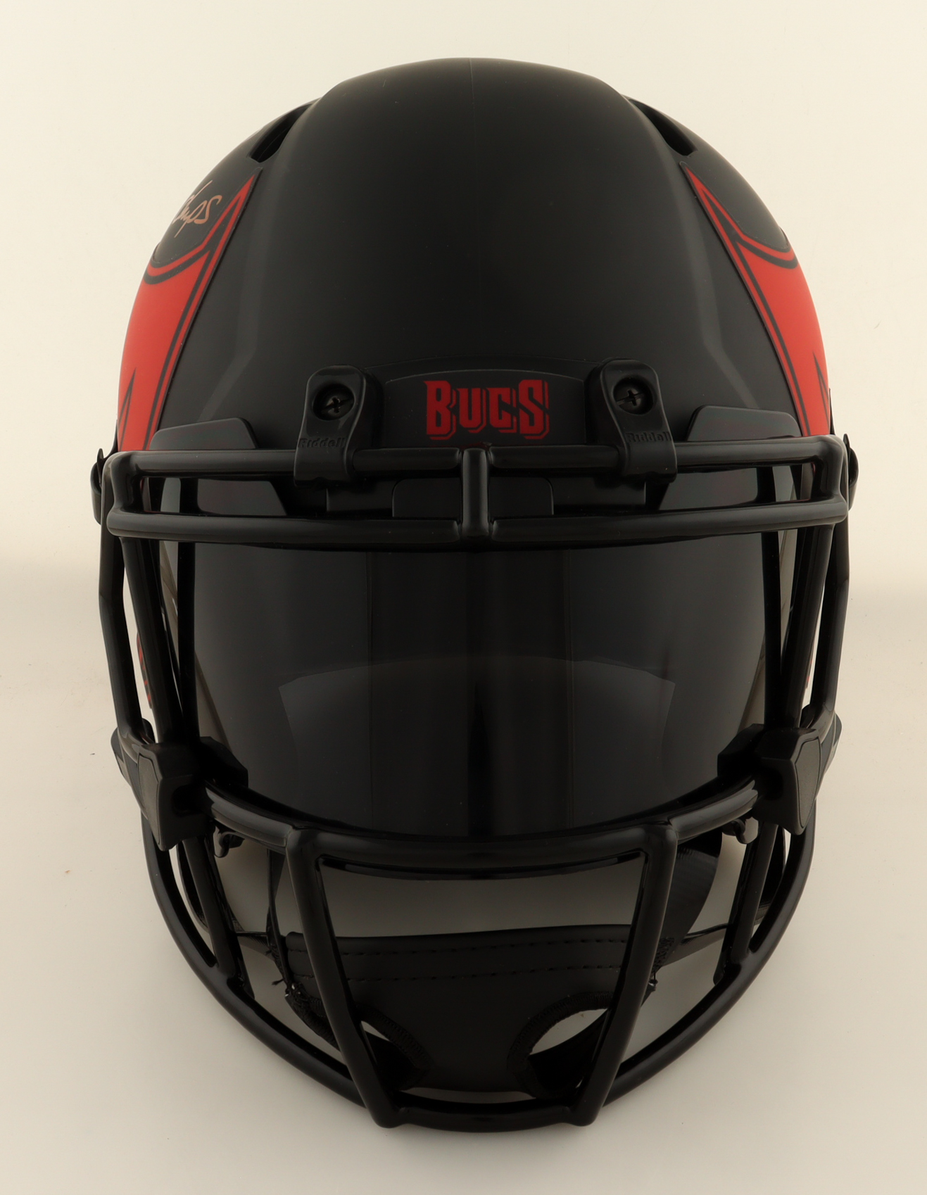Riddell Tampa Bay Buccaneers full-size authentic on-field Eclipse Alternate speed helmet with a visor. Hand-signed and inscribed by Warren Sapp (HOF).