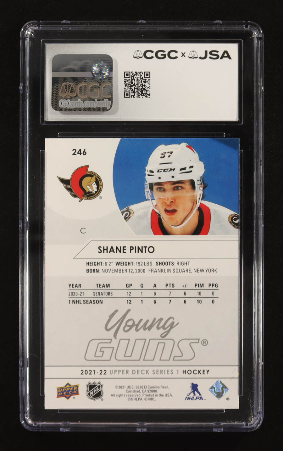 Shane Pinto Signed 2021-22 Upper Deck #246 RC (CGC 10)