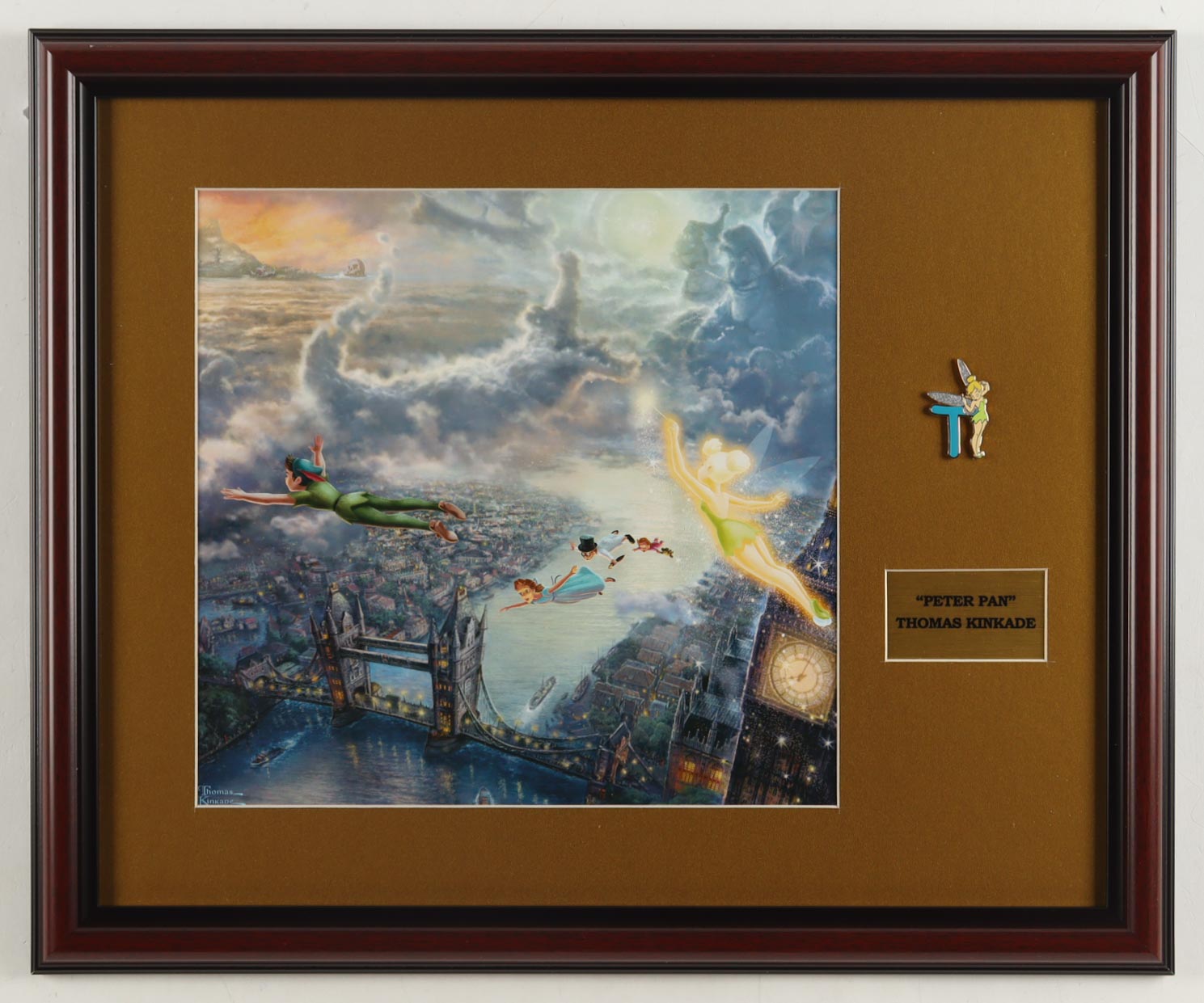 Thomas Kinkade Walt Disney's "Peter Pan" Custom Framed Print Display with Tinkerbell Movie Pin