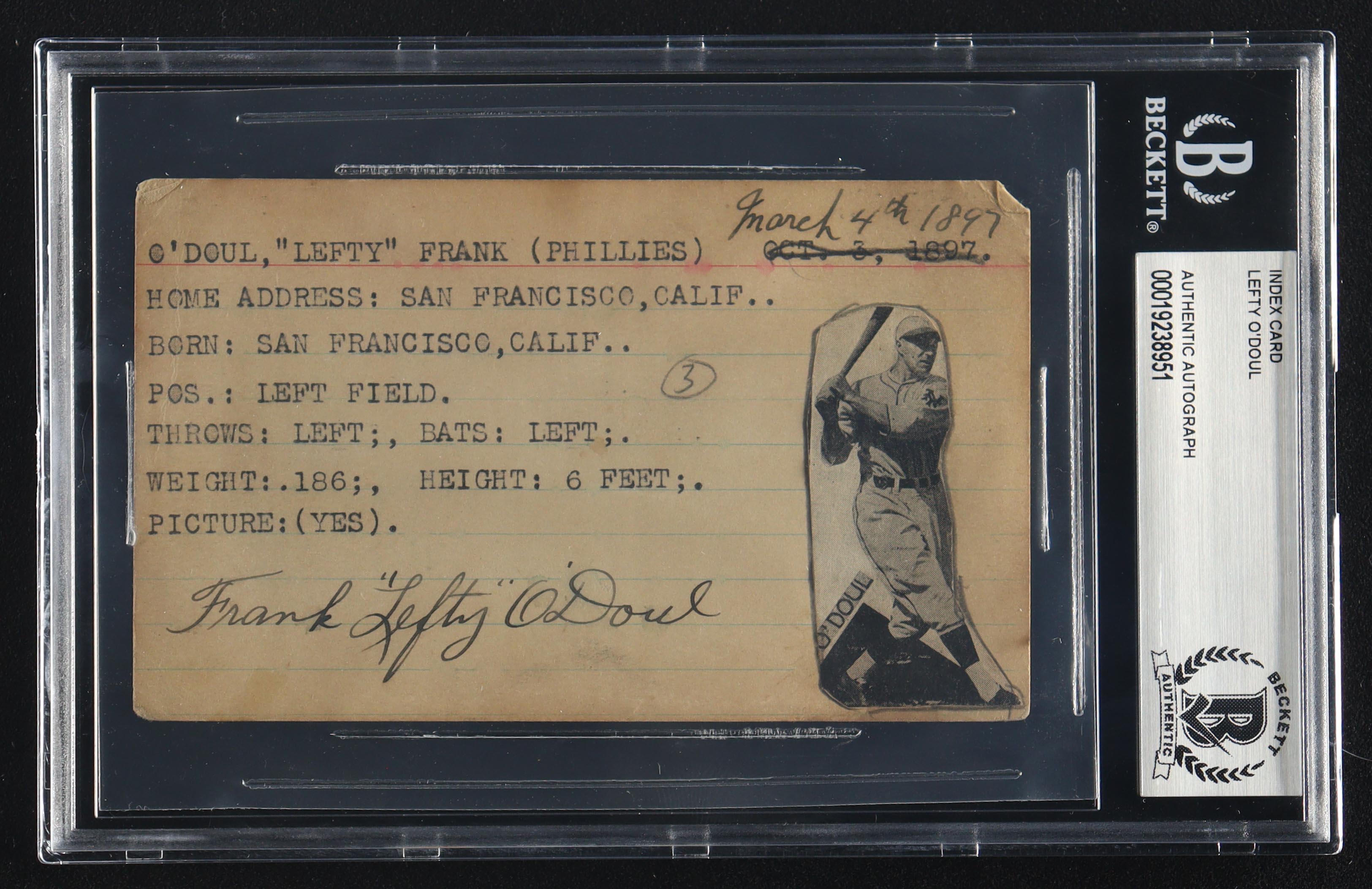 Lefty O'Doul Signed Vintage 3x5 Index Card (BGS)