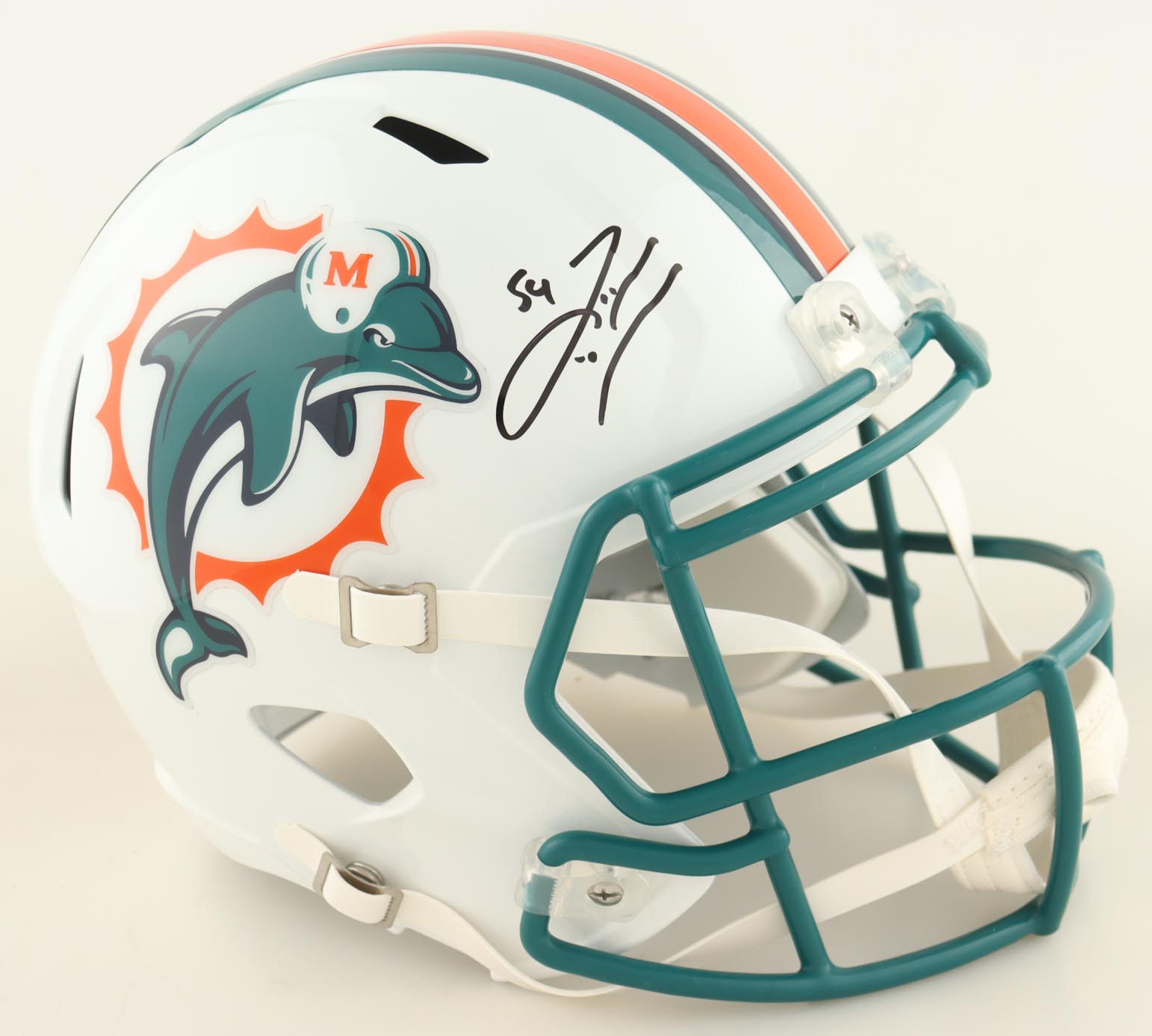 Riddell Miami Dolphins full-size replica throwback speed helmet has been hand-signed by