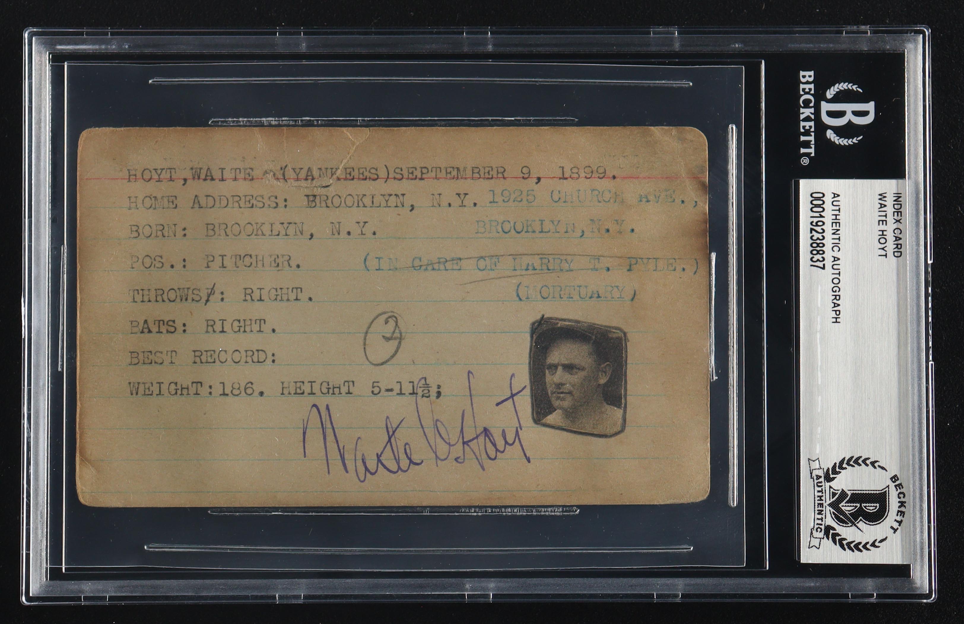 Waite Hoyt Signed Vintage 3x5 Index Card (BGS)