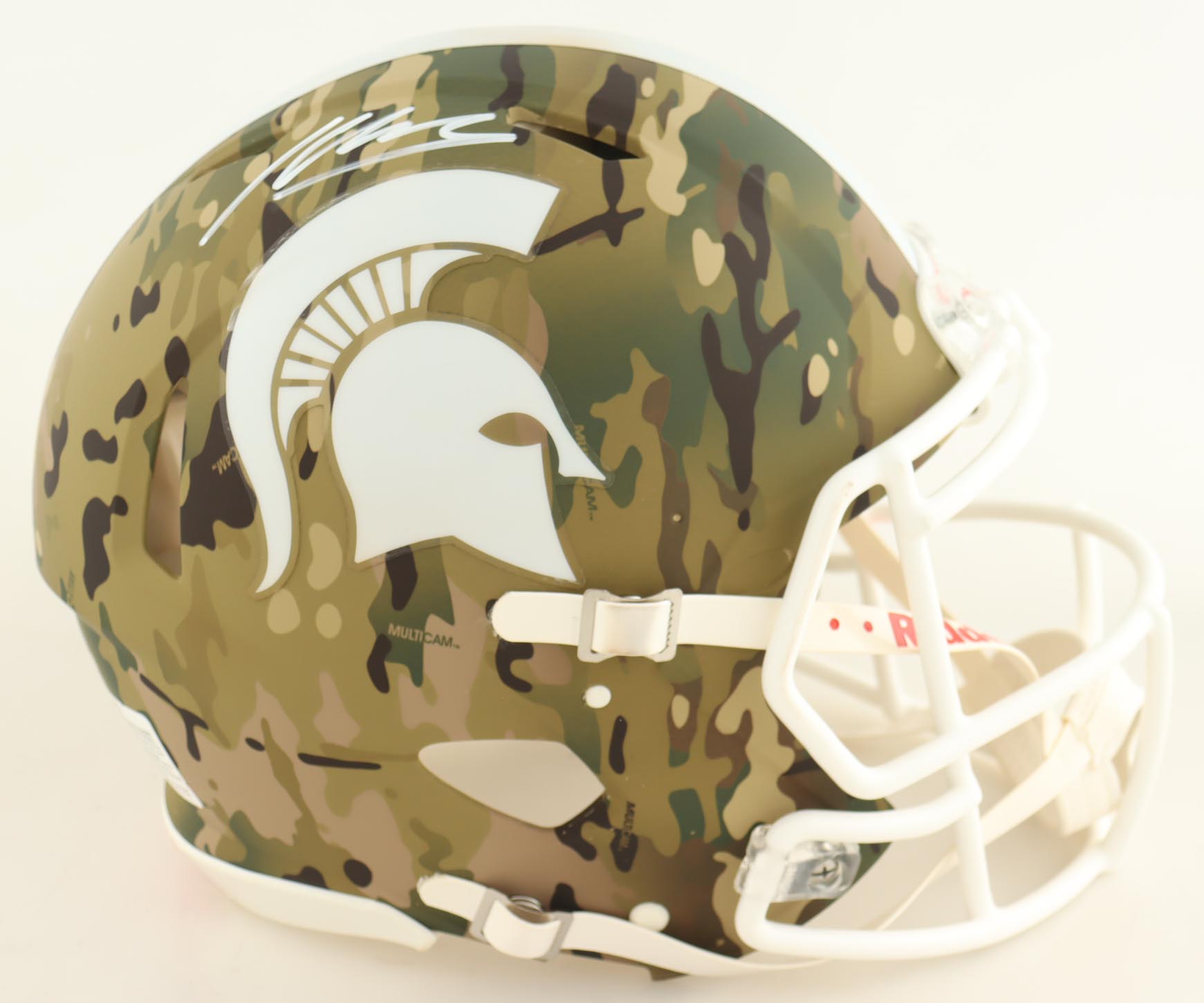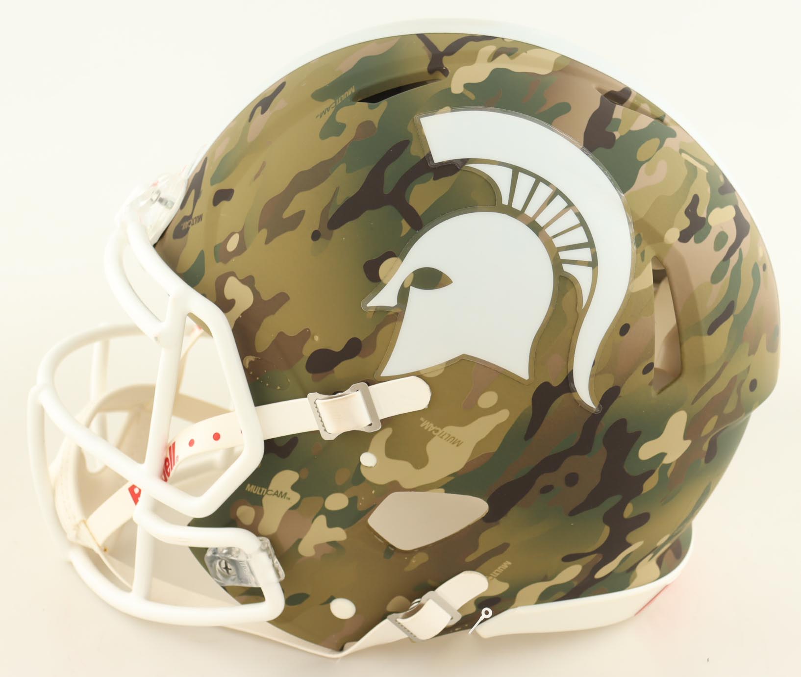 Riddell Michigan State Spartans full-size authentic on-field camo speed helmet. Hand-signed by Kenneth Walker III.