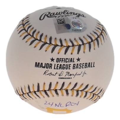 Rawlings Official Major League Pittsburgh Pirates logo baseball has been hand-signed and inscribed by Paul Skenes.