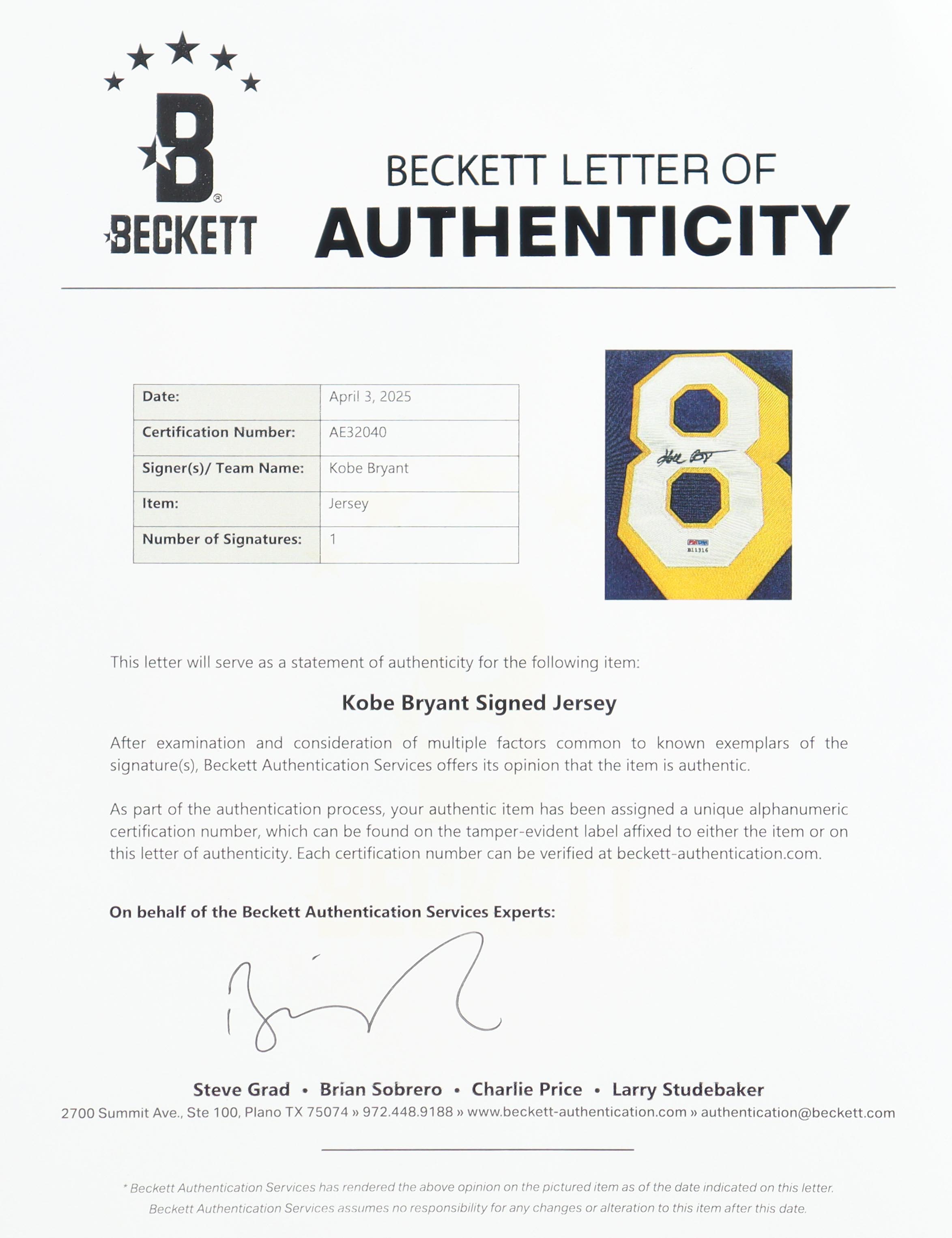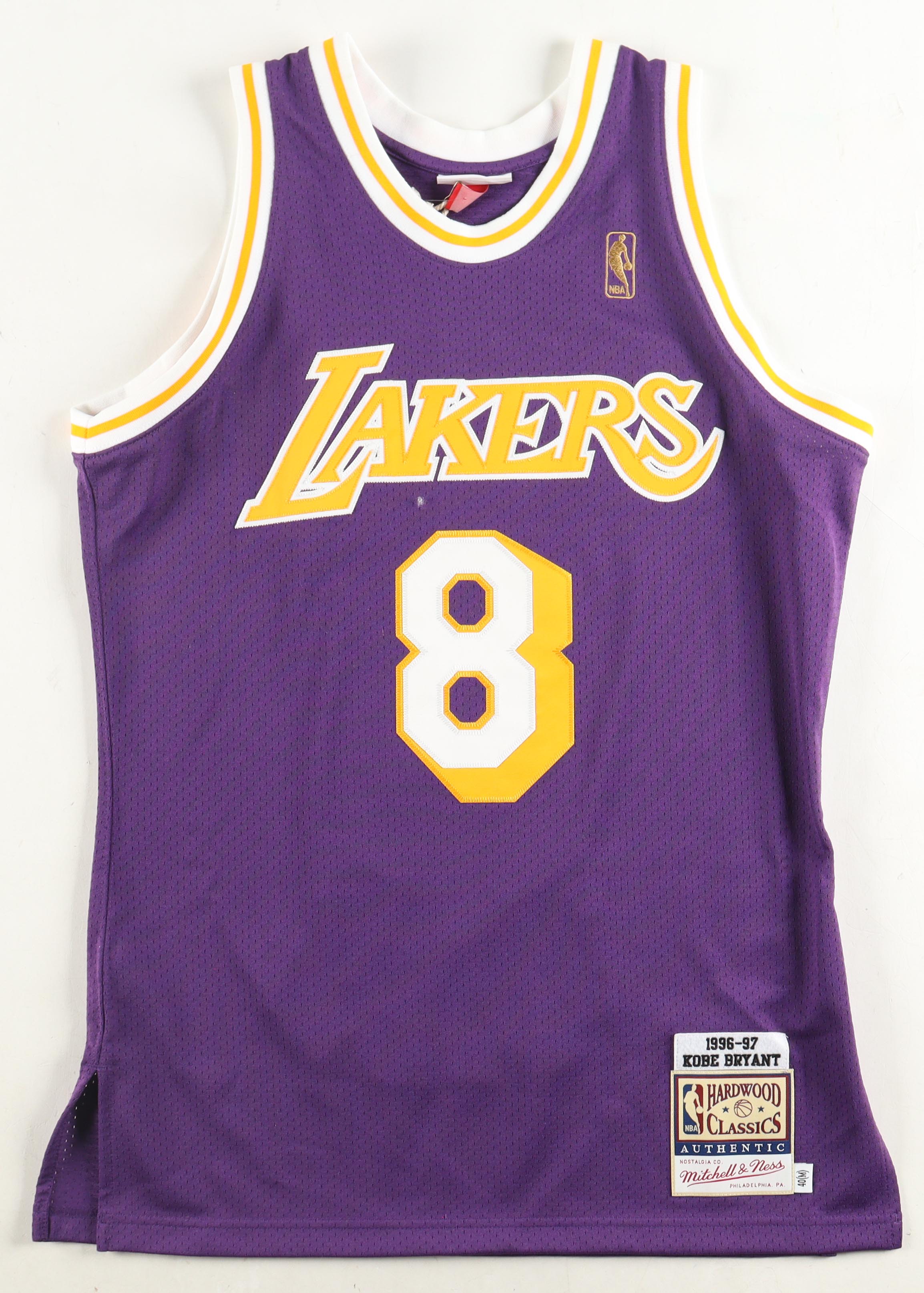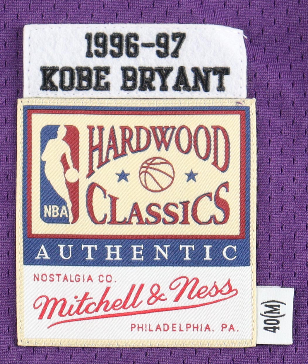 Authentic Mitchell & Ness 1996-97 jersey with everything sewn on, size M. Hand-signed on the back number by Los Angeles Lakers icon, Kobe Bryant!