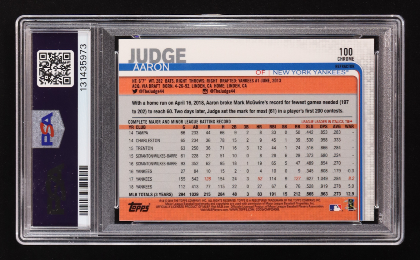 Aaron Judge 2019 Topps Chrome Batting Refractor #100 (PSA 10)