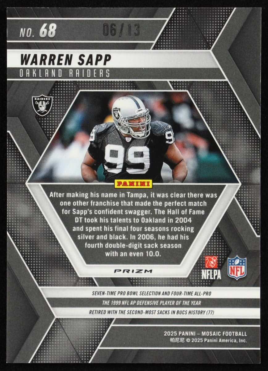 Warren Sapp 2025 Panini Mosaic Mosaic Pink Spectris FOTL #68 #06/13
