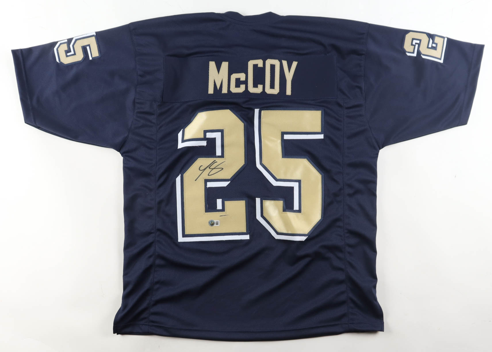 Custom jersey with everything sewn on, size XL. Hand-signed by LeSean McCoy. Please note, there is a stray ink mark above the hologram. See photos regarding the condition of the item.