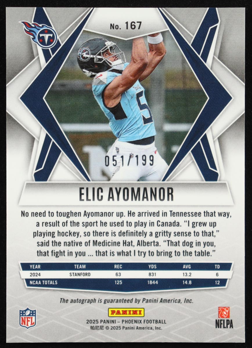 Elic Ayomanor 2025 Panini Phoenix Rookie Autographs Silver #167 #051/199 RC