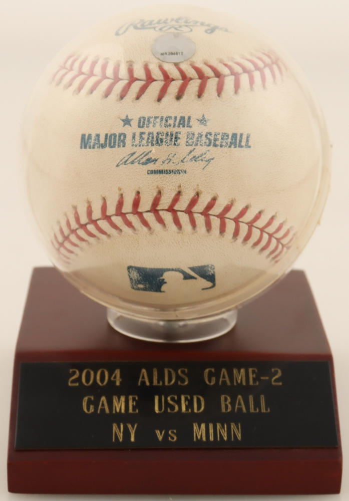 2004 New York Yankees American League Championship Game Two Game Used Rawlings Official Major League baseball. Please note, item is unsigned and has been naturally stained and toned. Refer to photos regarding the condition of the item.