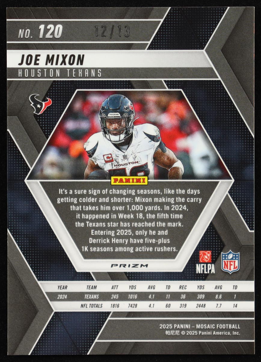 Joe Mixon 2025 Panini Mosaic Mosaic Pink Spectris FOTL #120 #12/13
