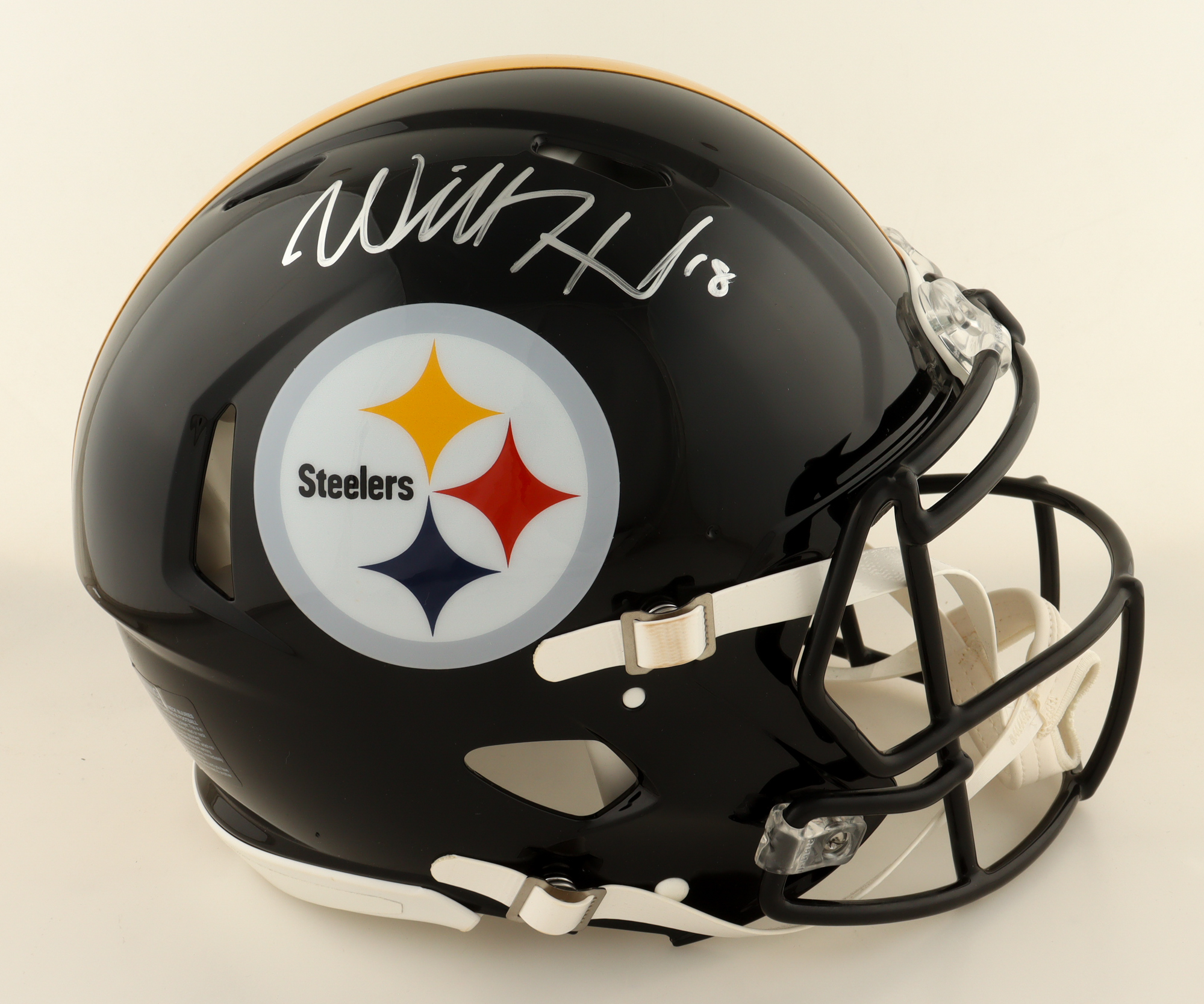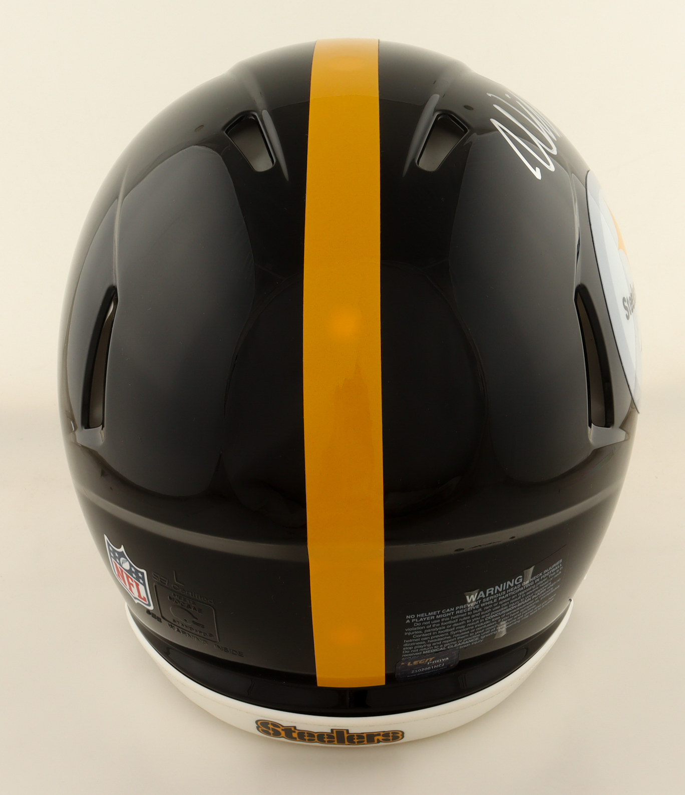 Riddell Pittsburgh Steelers full-size authentic on-field speed helmet has been hand-signed by Will Howard.