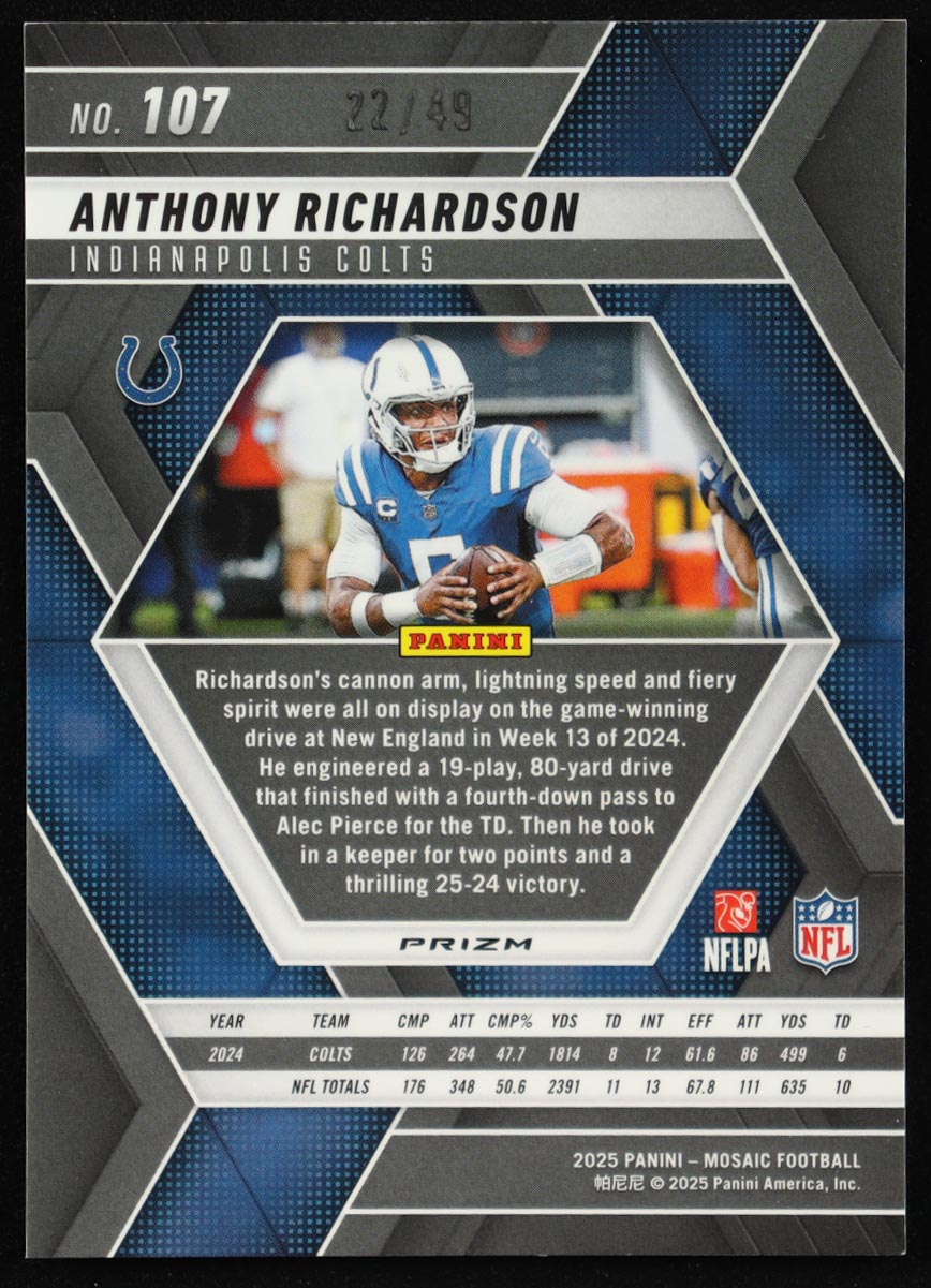 Anthony Richardson 2025 Panini Mosaic Mosaic Purple #107 #22/49