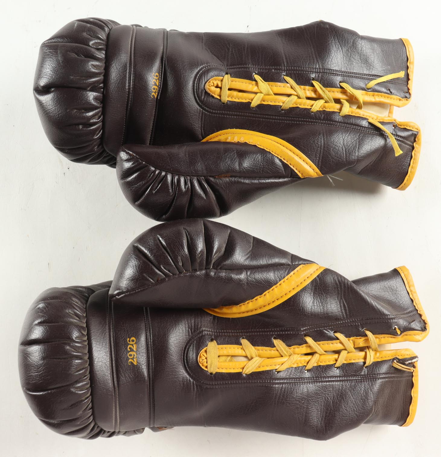 Set of (2) Everlast vintage brown leather boxing gloves has been hand-signed by Mike Tyson (HOF). Refer to photos regarding the condition of the item.