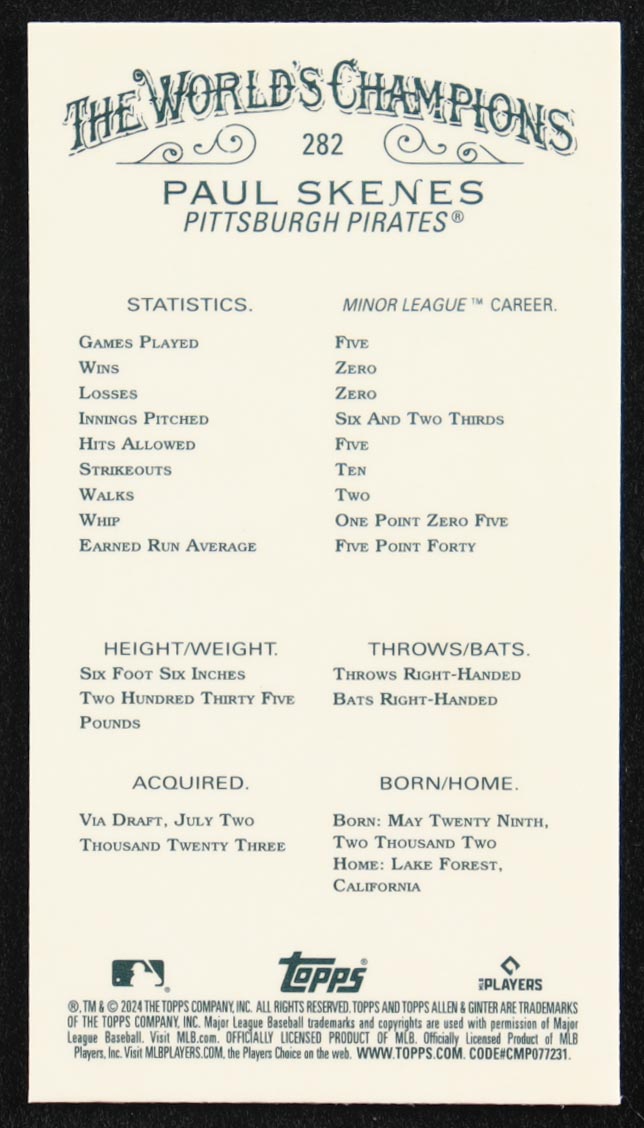Paul Skenes 2024 Topps Allen and Ginter Chrome Mini #282 RC