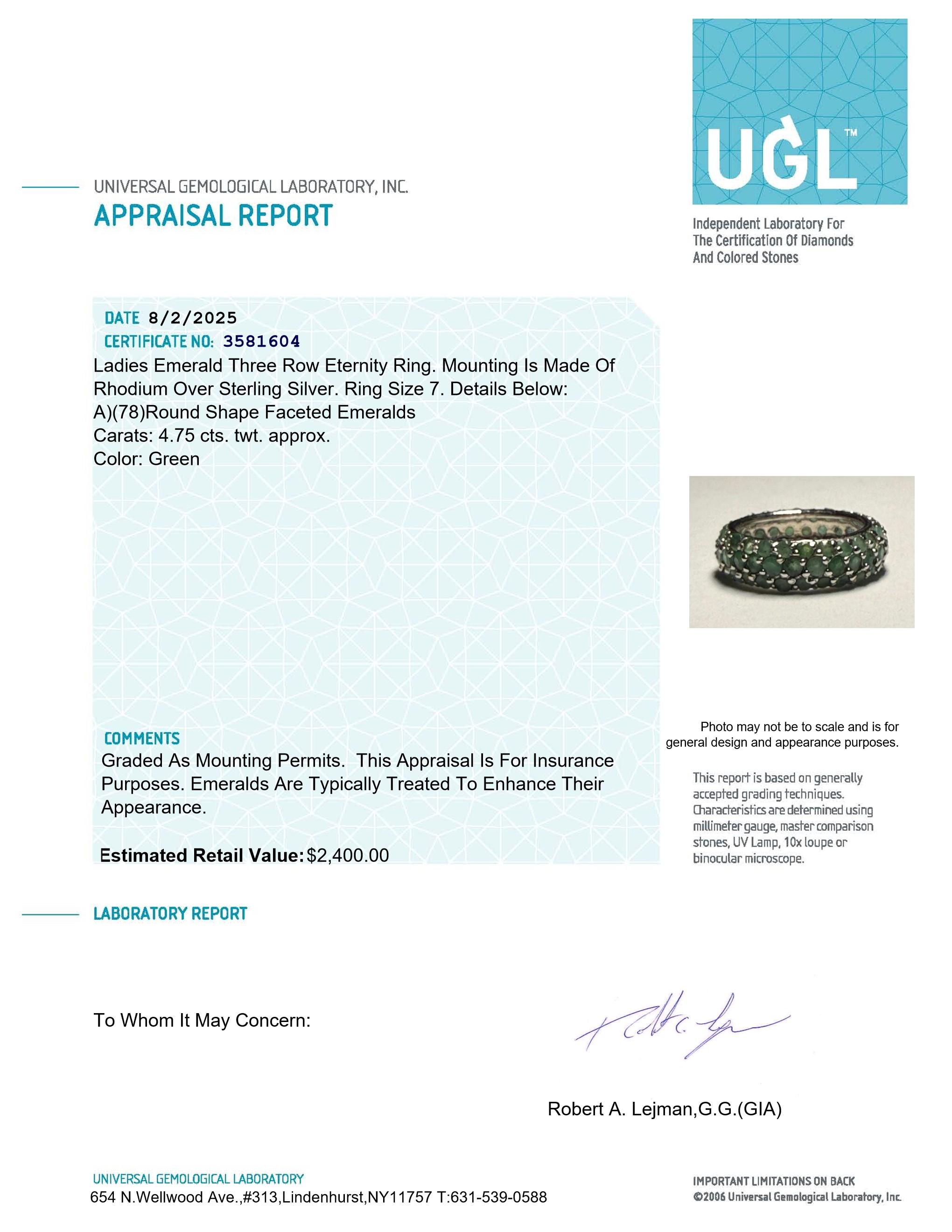 4.75 Carats Natural Emerald Eternity Ring | $2,400 Estimated Retail Value (UGL Cert)
