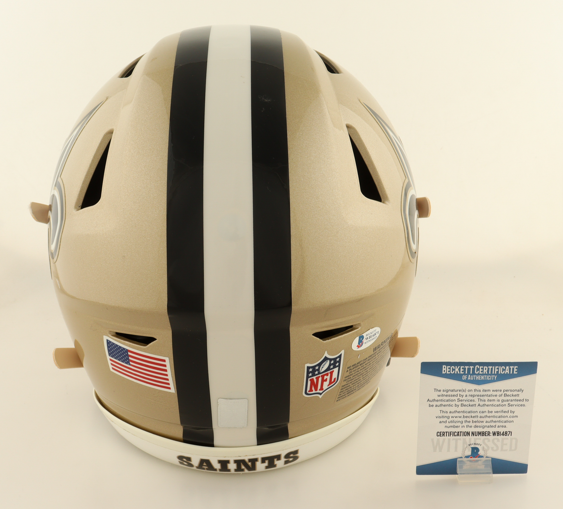 Riddell New Orleans Saints full-size authentic on-field speed flex helmet. Hand-signed by Drew Brees.