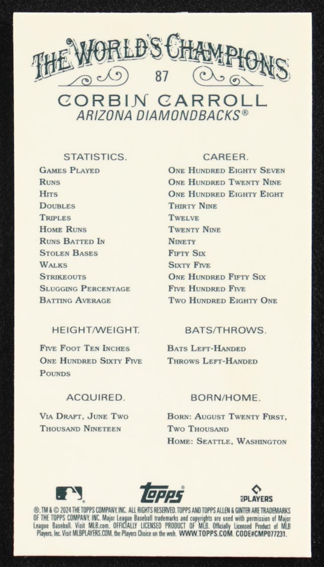 Corbin Carroll 2024 Topps Allen and Ginter Chrome Mini #87