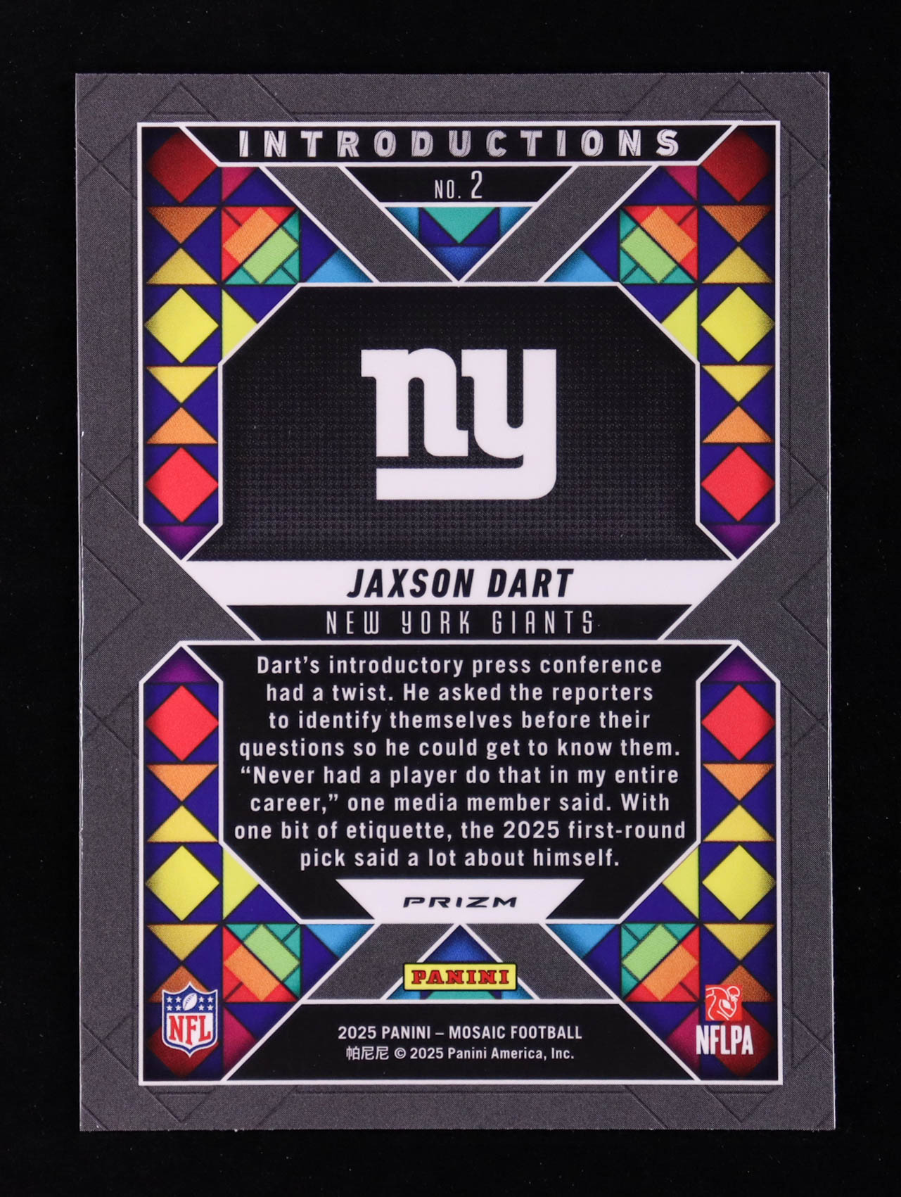 Jaxson Dart 2025 Panini Mosaic Introductions No Huddle Silver #2 RC