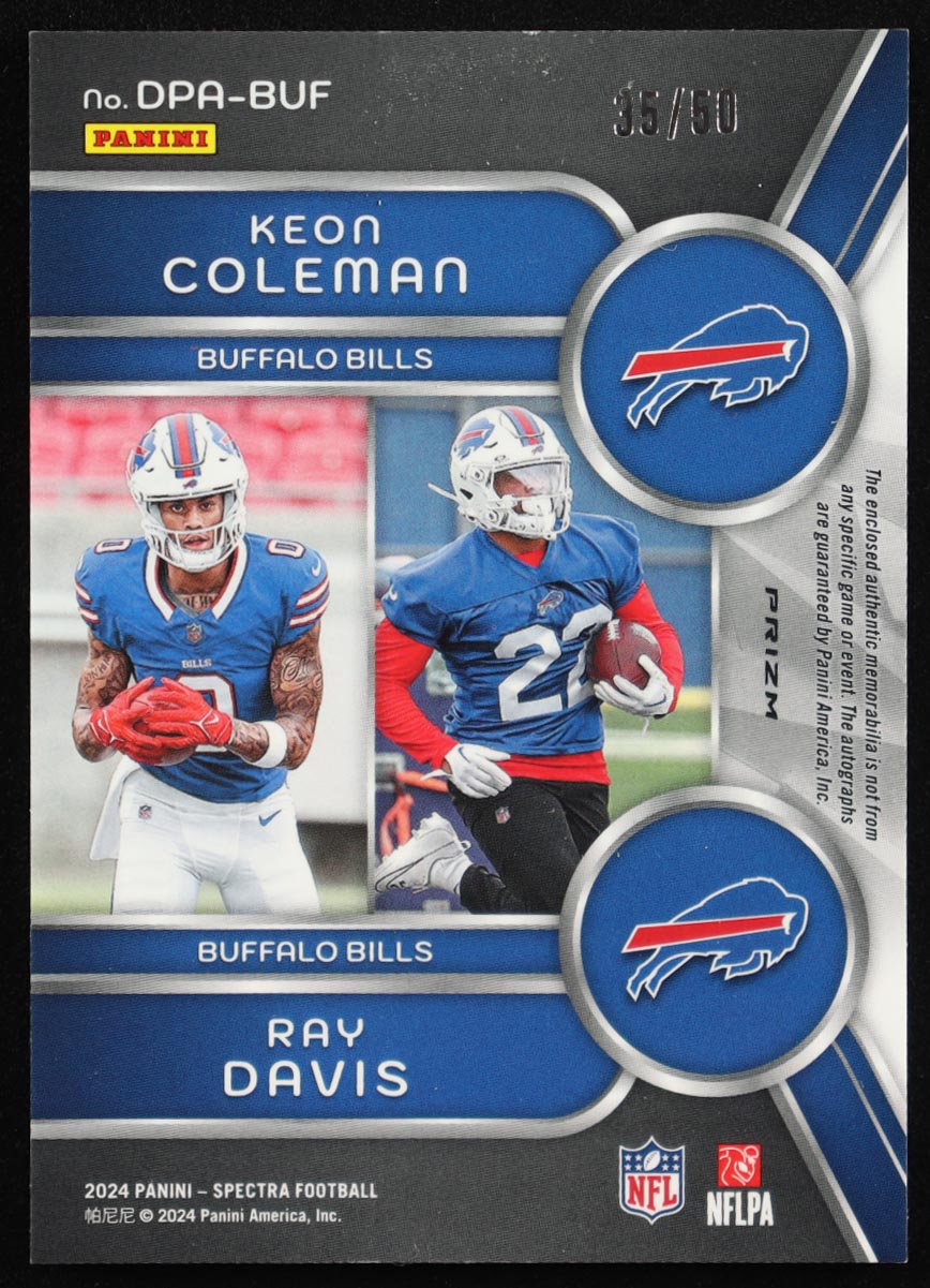 Keon Coleman / Ray Davis 2024 Panini Spectra Dual Patch Autographs Hyper #12 #35/50 RC