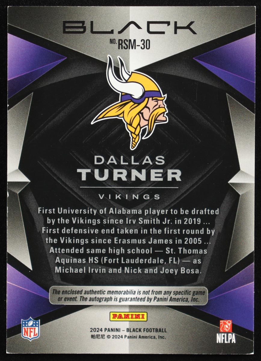 Dallas Turner 2024 Panini Black Rookie Signature Materials #30 #62/99 RC