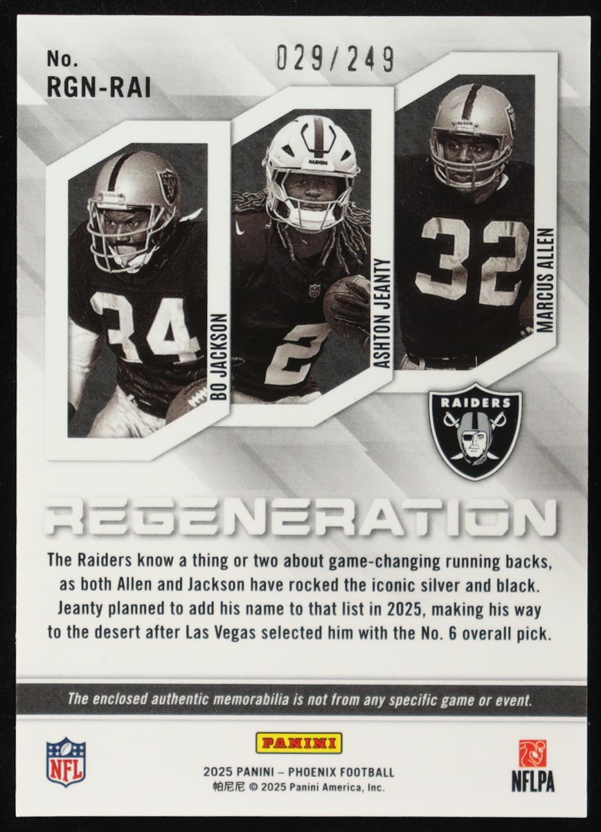 Bo Jackson / Ashton Jeanty / Marcus Allen 2025 Panini Phoenix Regeneration Jerseys Red #1 #029/249