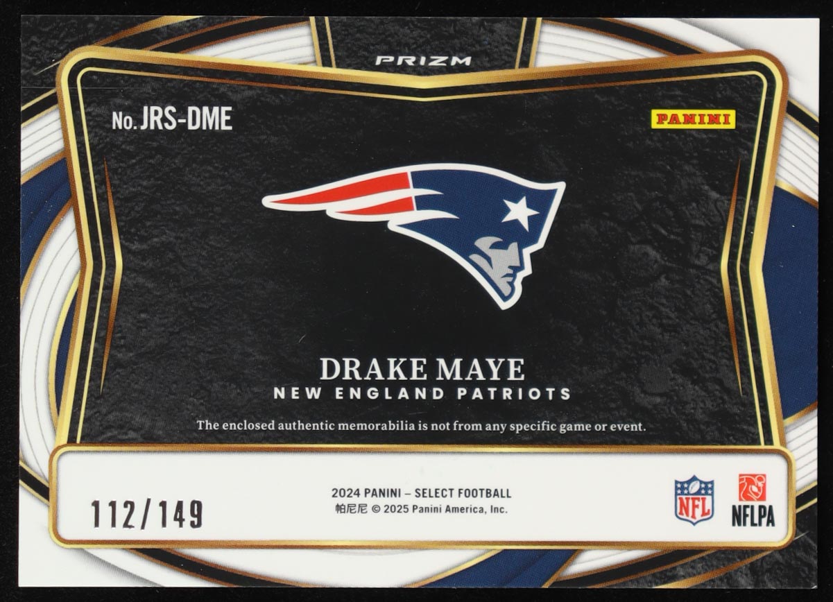 Drake Maye 2024 Select Jumbo Rookie Swatch Prizm #12 #112/149 RC