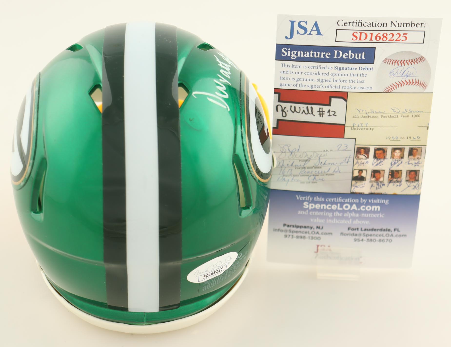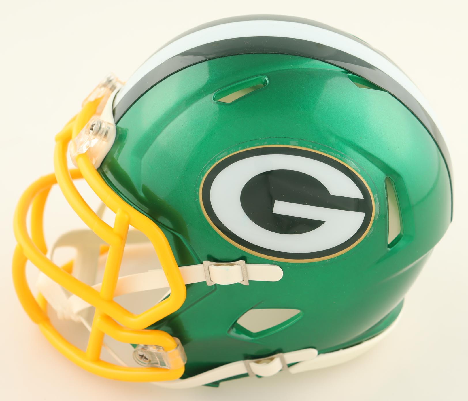 Riddell Green Bay Packers Flash Alternate Speed mini helmet. Hand-signed by Devonte Wyatt.