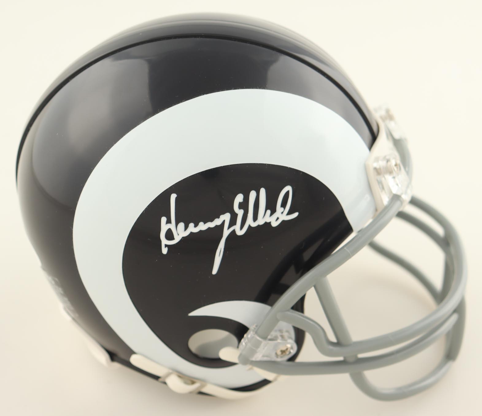Riddell Los Angeles Rams Throwback mini helmet has been hand-signed by Henry Ellard.