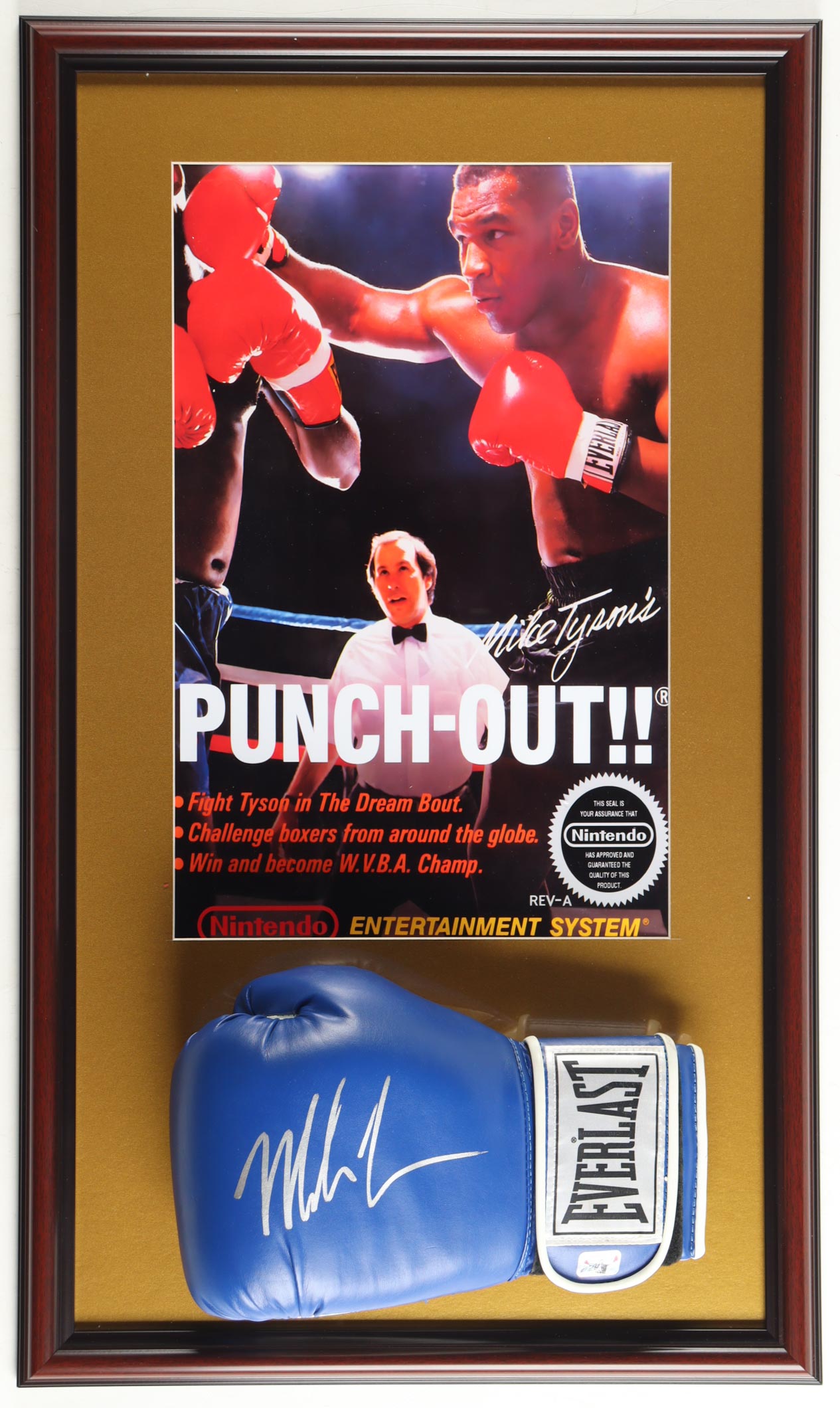 Custom frame measures 17" x 29" in size. Features an Everlast boxing glove that have been hand-signed by Mike Tyson (HOF). Display also includes an 12" x 16" art print. Refer to photo regarding the condition of the item.