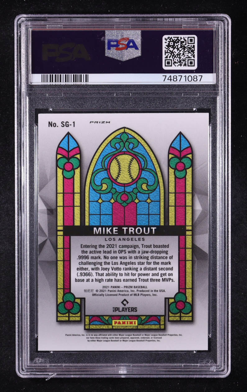 Mike Trout 2021 Panini Prizm Stained Glass Prizms White Wave #1 (PSA 9)