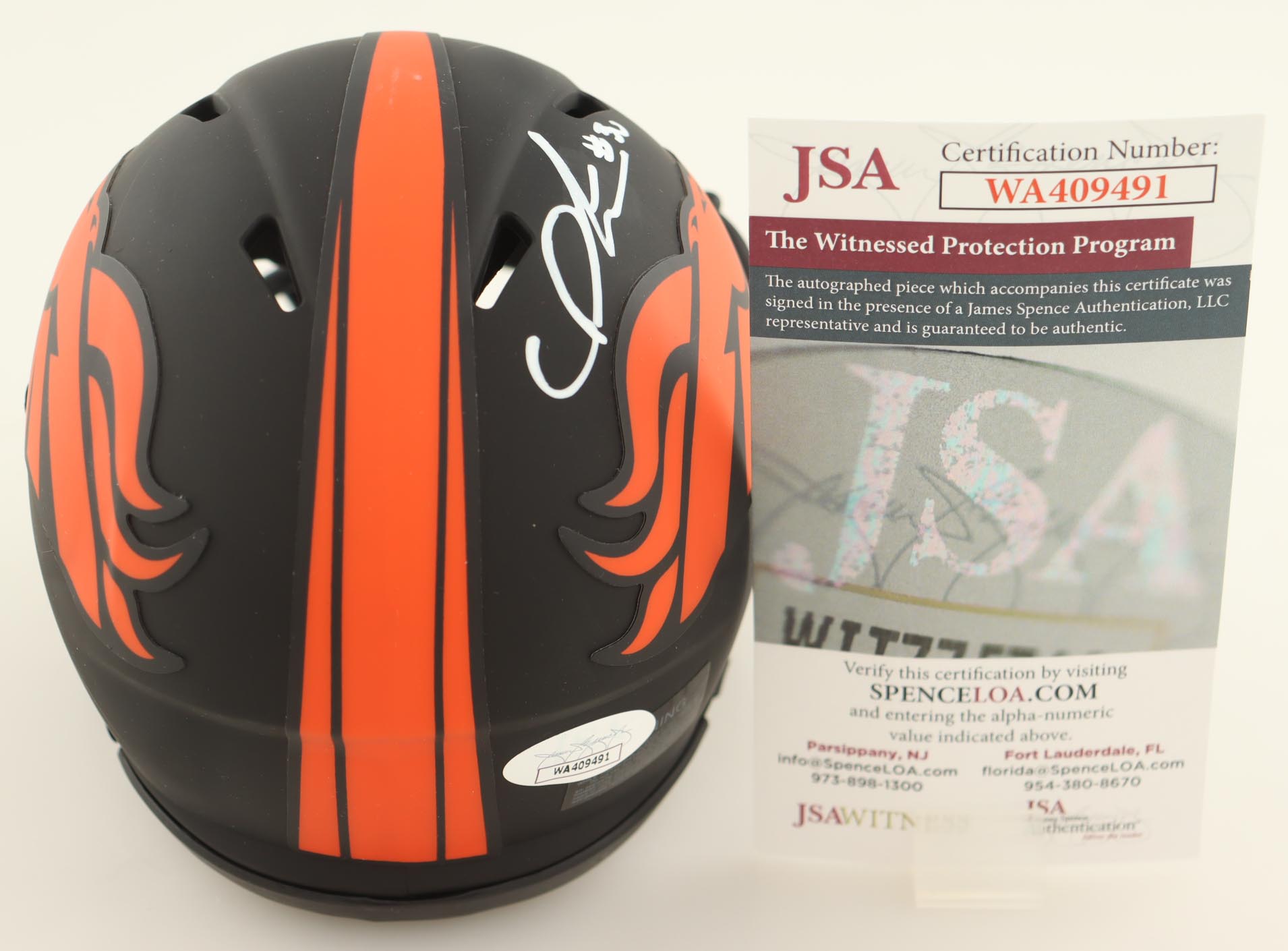 Riddell Denver Broncos Eclipse Alternate Speed mini helmet. Hand-signed by Caden Sterns.