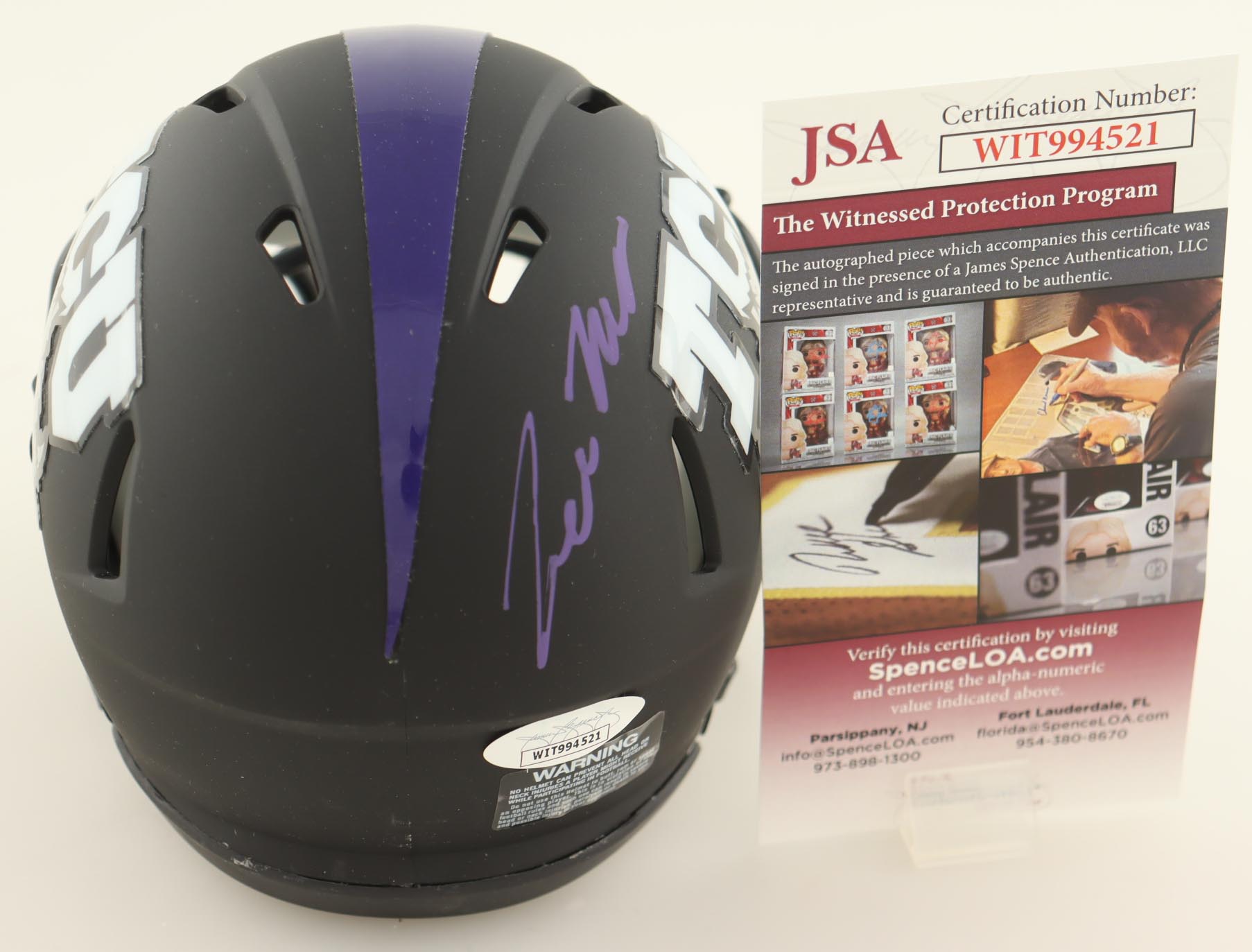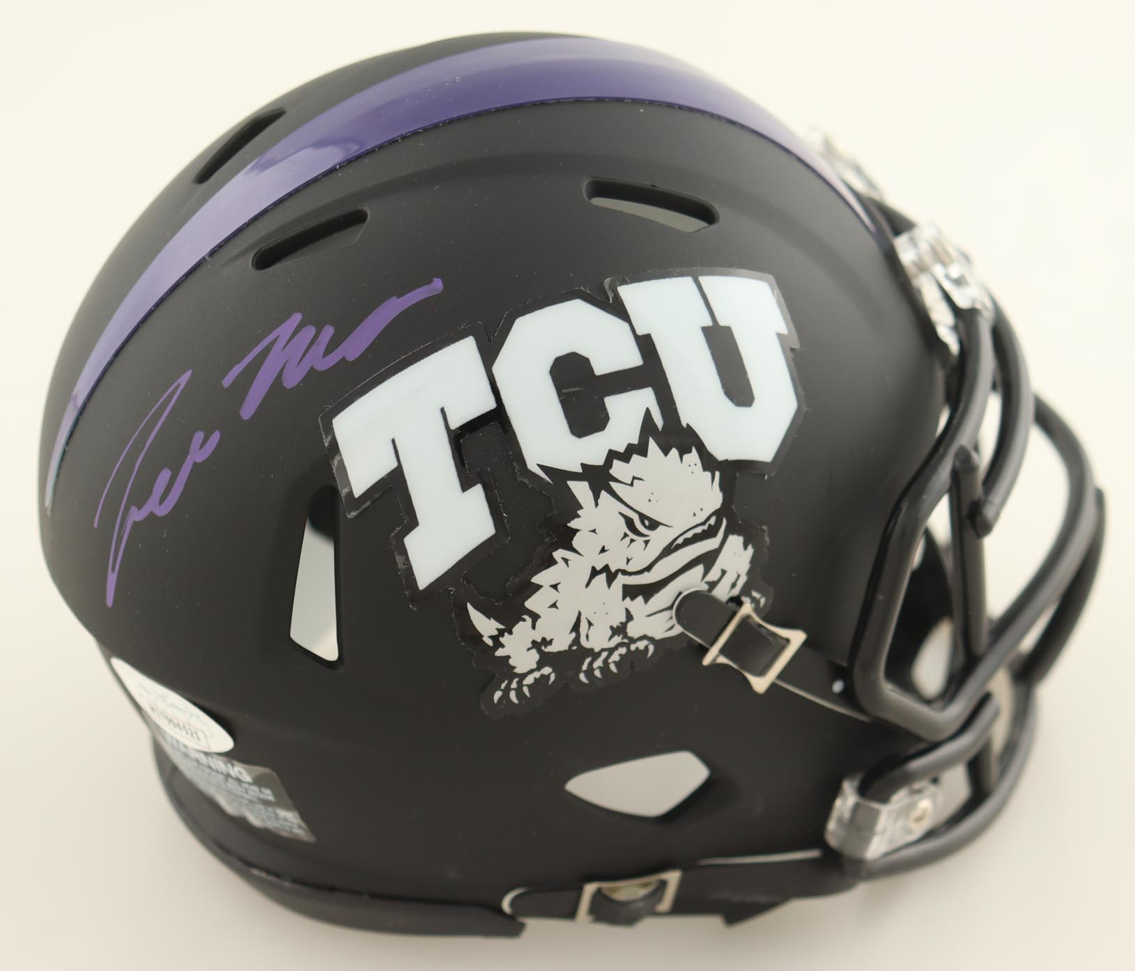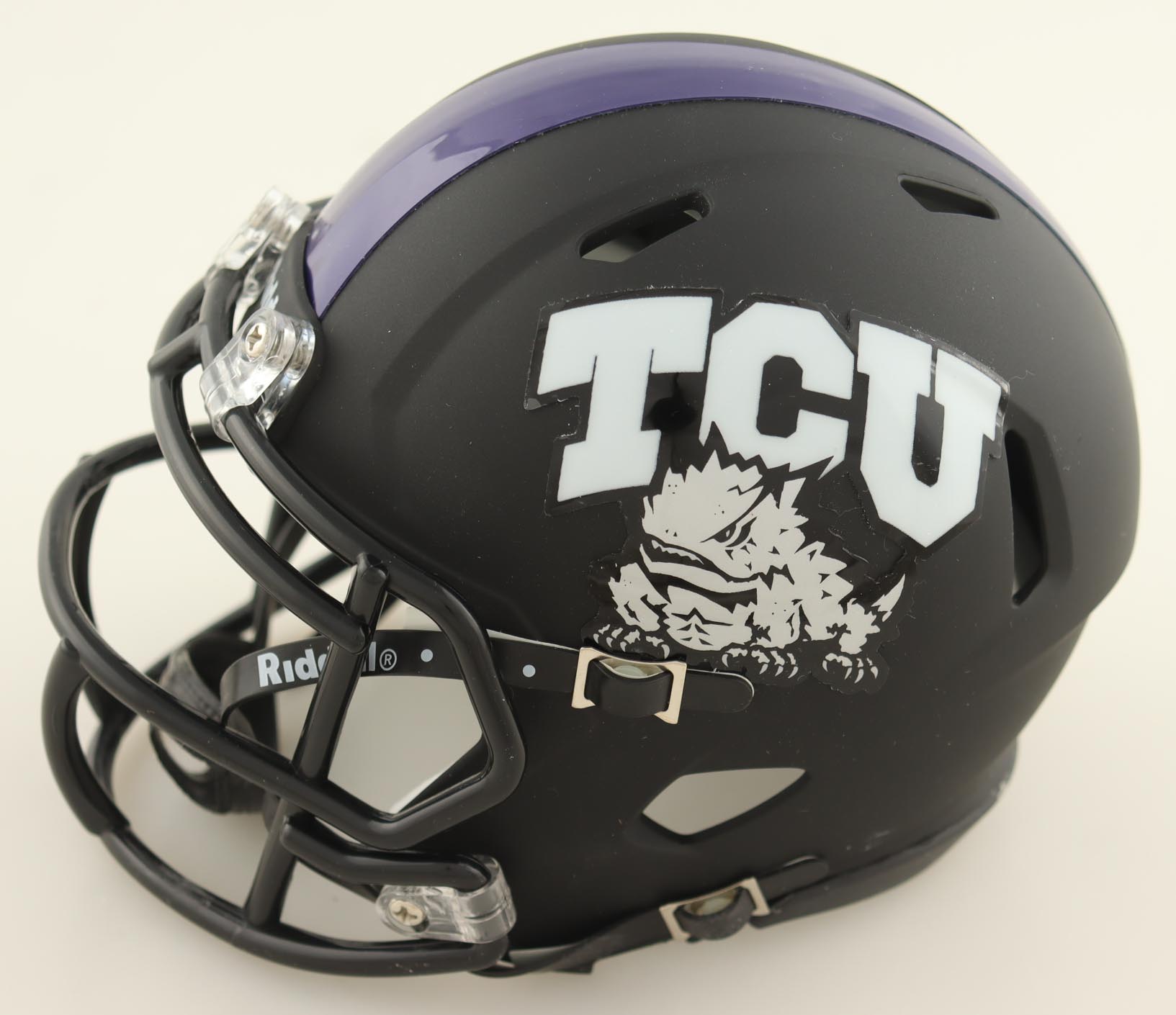 Riddell TCU Horned Frogs Speed mini helmet has been hand-signed by Trevon Moehrig.