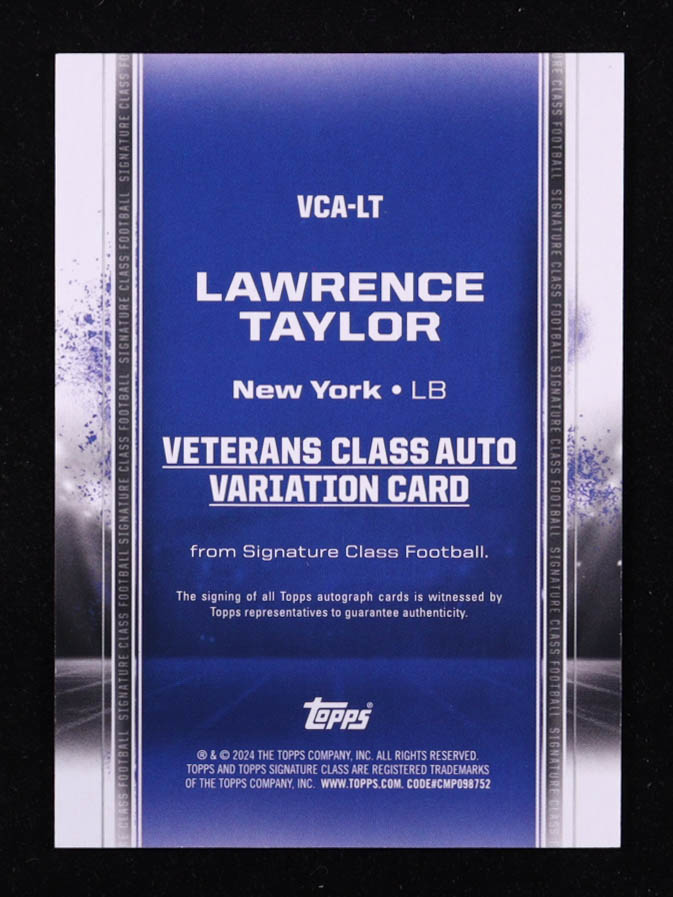 Lawrence Taylor 2024 Topps Signature Class Veteran Autographs Purple #VCA-LT #061/100