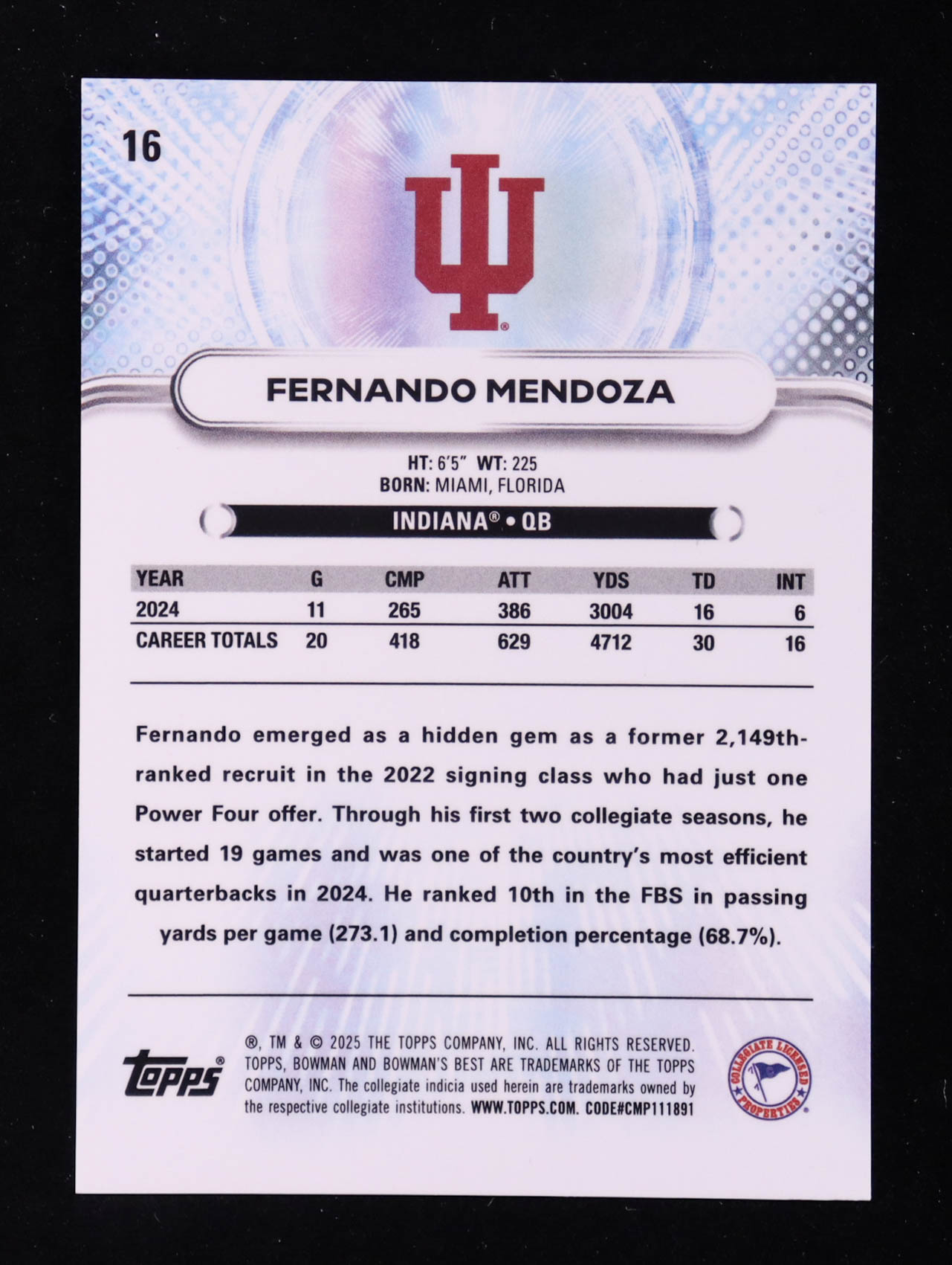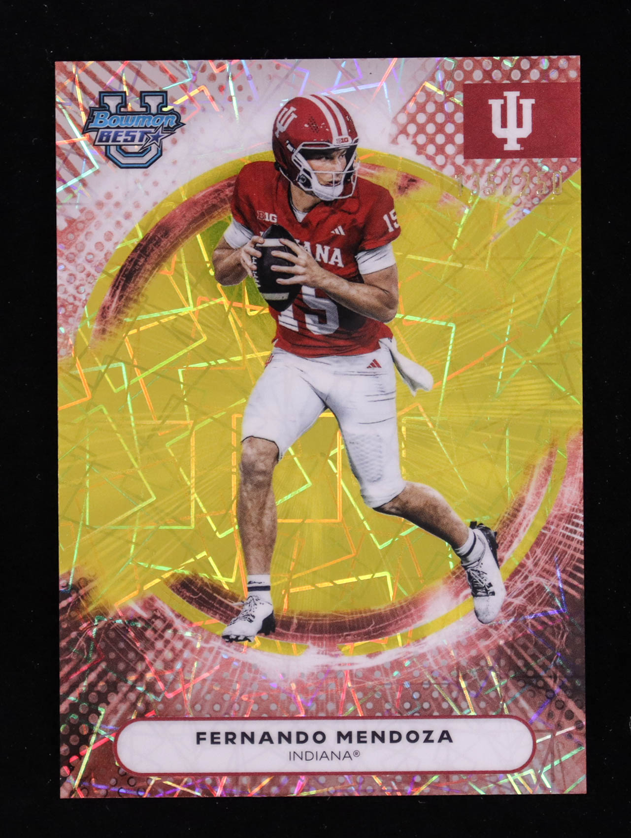 Fernando Mendoza 2025 Bowman's Best University Yellow Lazar Refractors #16 RC #135/250
