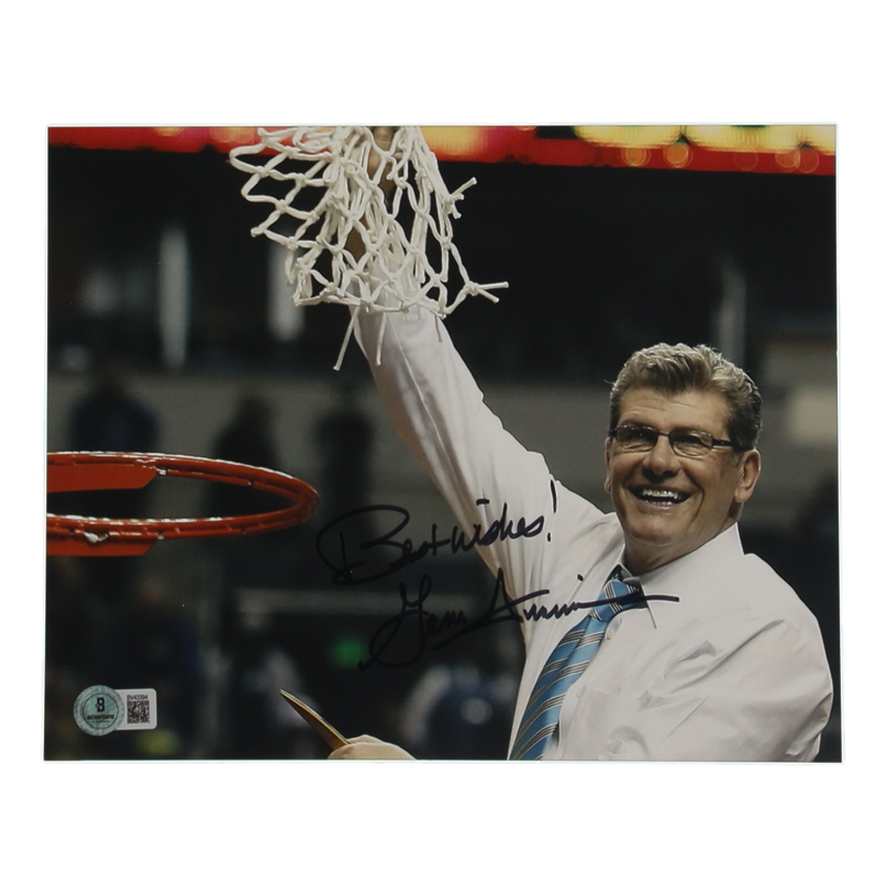 Photo measures approximately 8" x 10" in size and has been hand-signed and inscribed by Geno Auriemma (HOF).