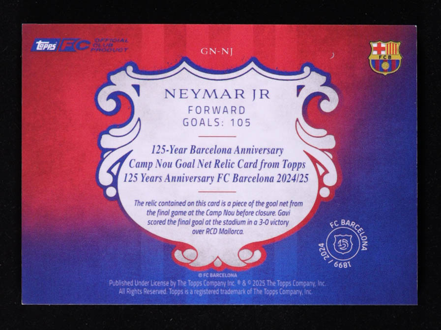Neymar Jr. 2024-25 FC Barcelona 125th Anniversary Topps Camp Nou Goal Net Relic Anniversary #GNNJ #046/125